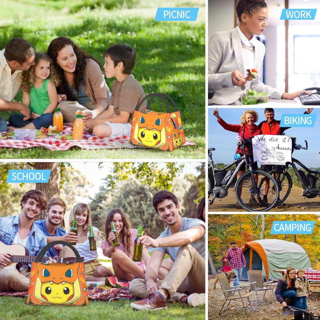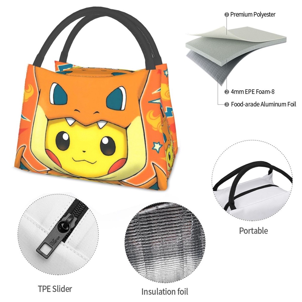 Pokemon Pikachu Insulated Lunch Tote Bag, Large Capacity Portable Student School Keep Warm and Cold Lunch Box