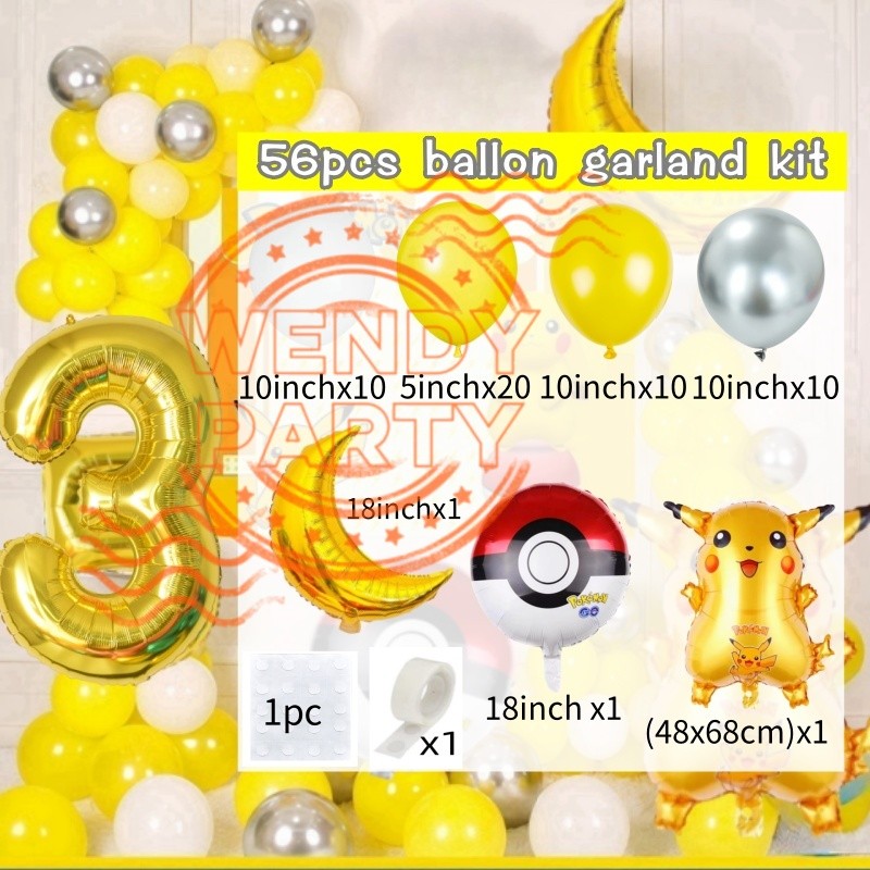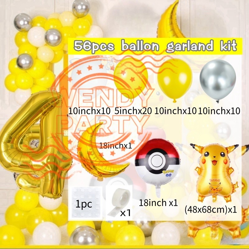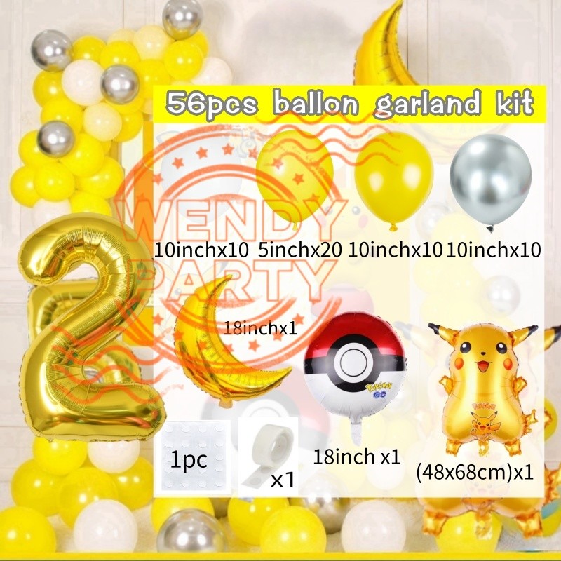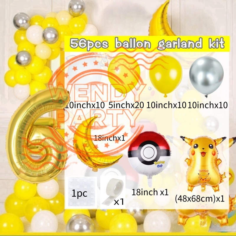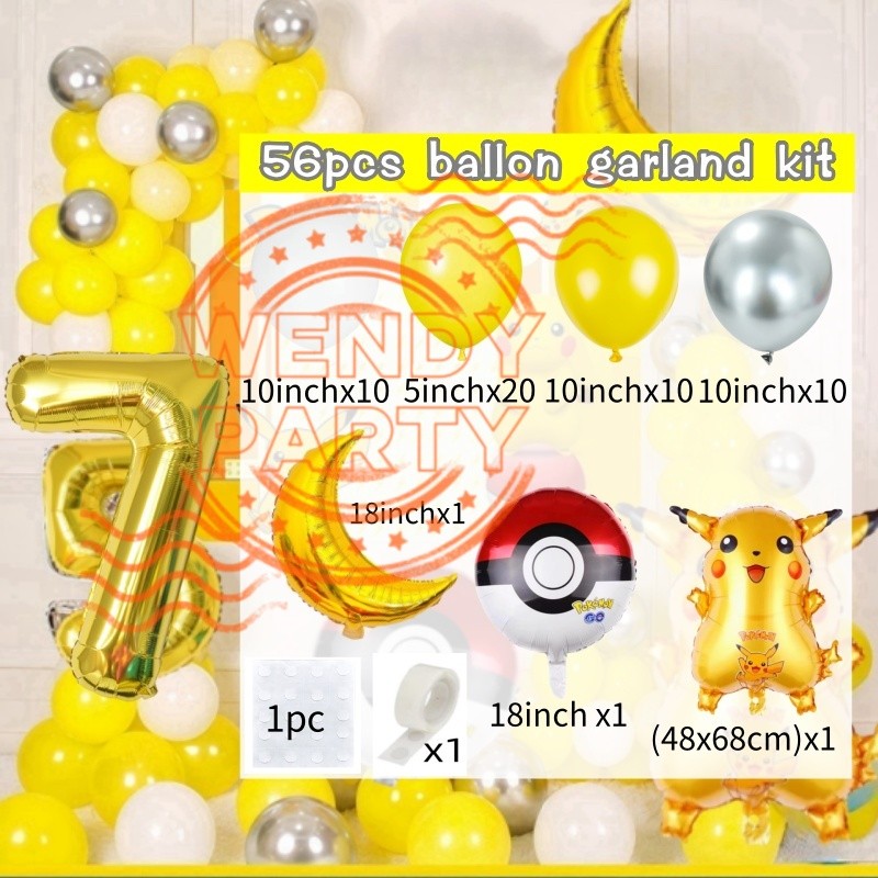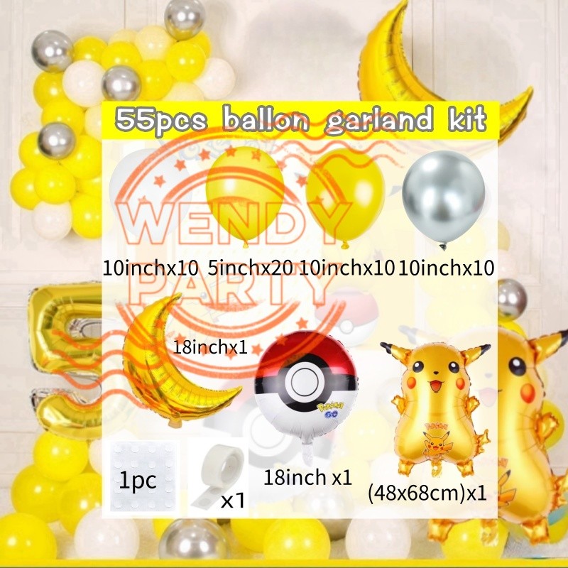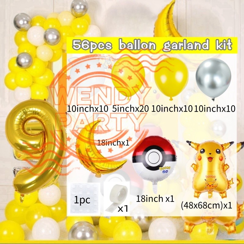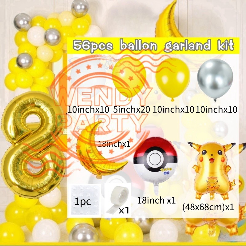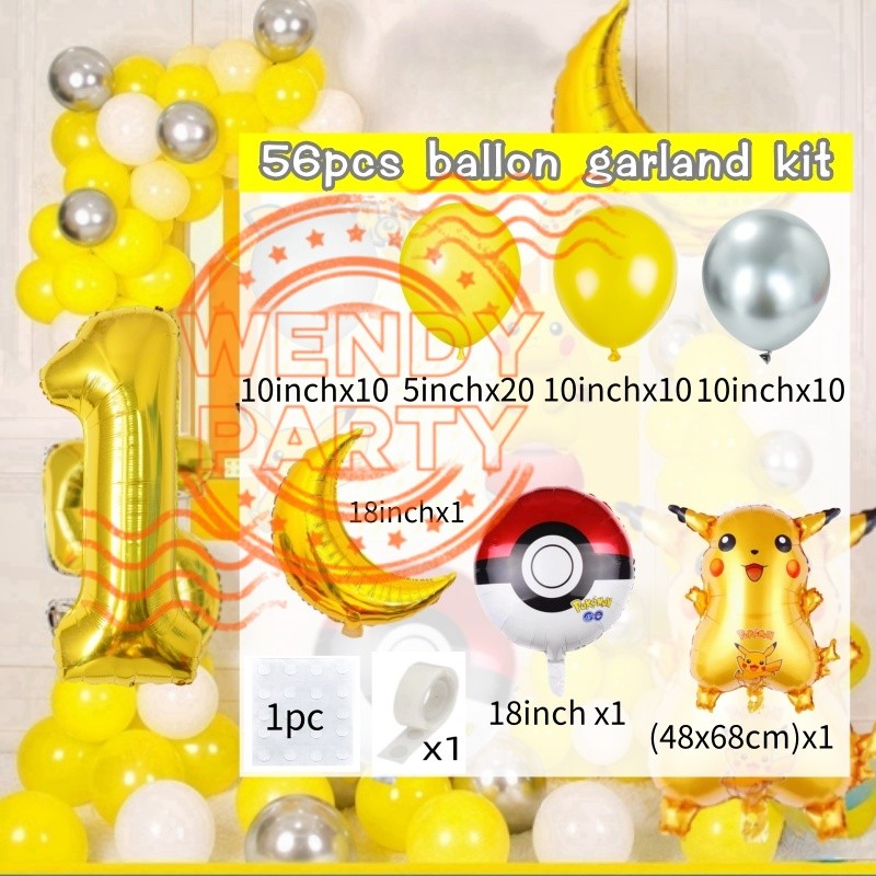 Pokemon Pikachu Theme Party Balloon Garland Arch Kit for Kid Birthday Party Decorations Baby Shower