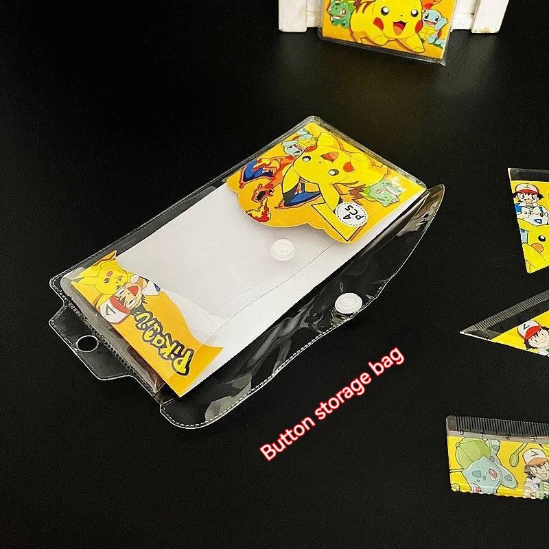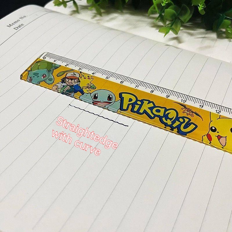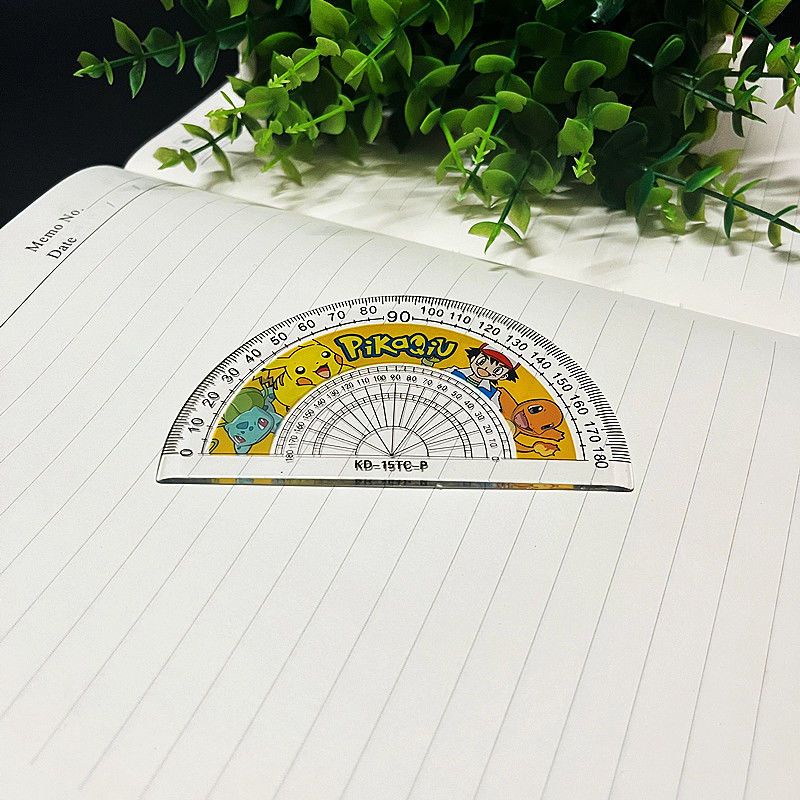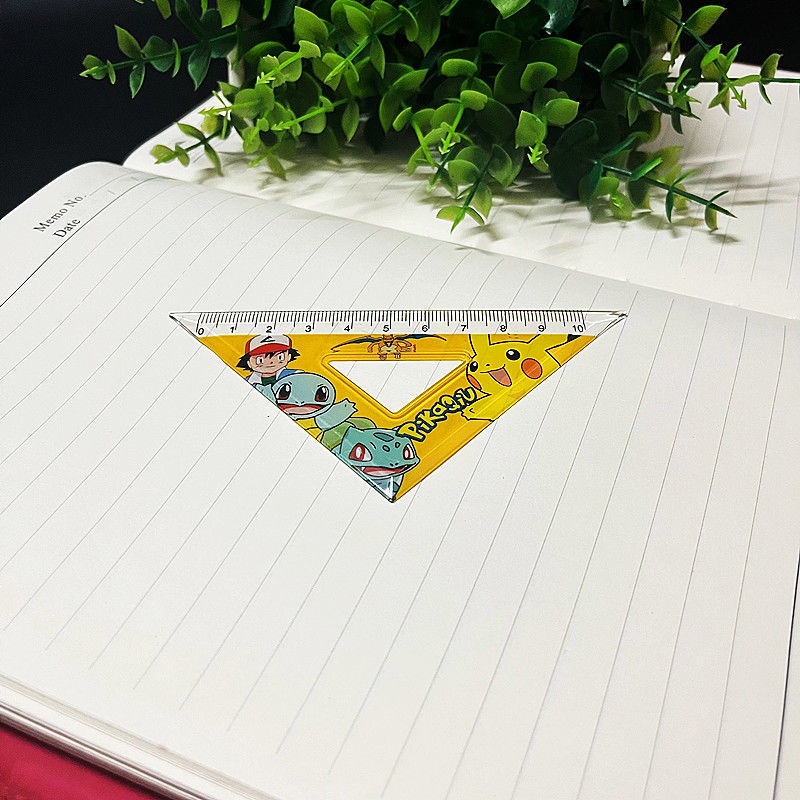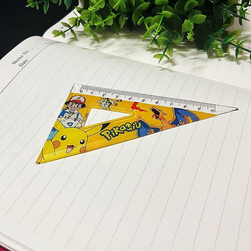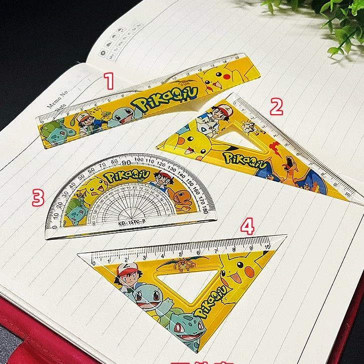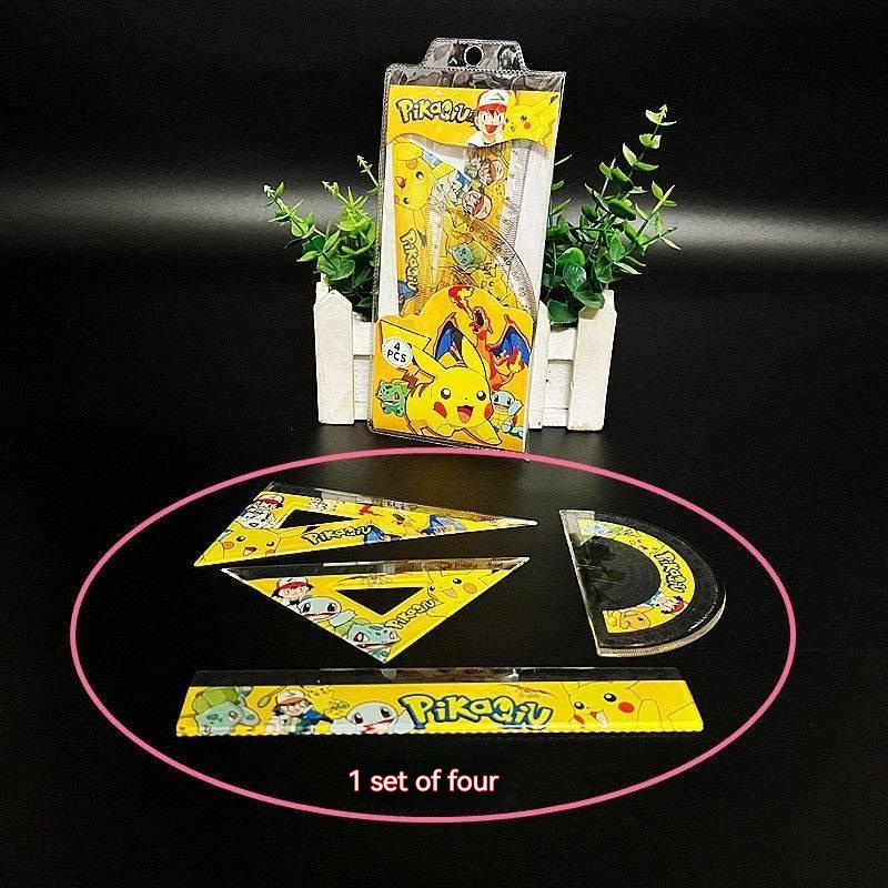 Pokemon Ruler stationery Supplies Set Student Prize gift 4-piece Set Cartoon Pocket Elf Pikachu Ruler Triangle Angle Measuring Set Ruler 15cm Test Drawing Hole Transparent