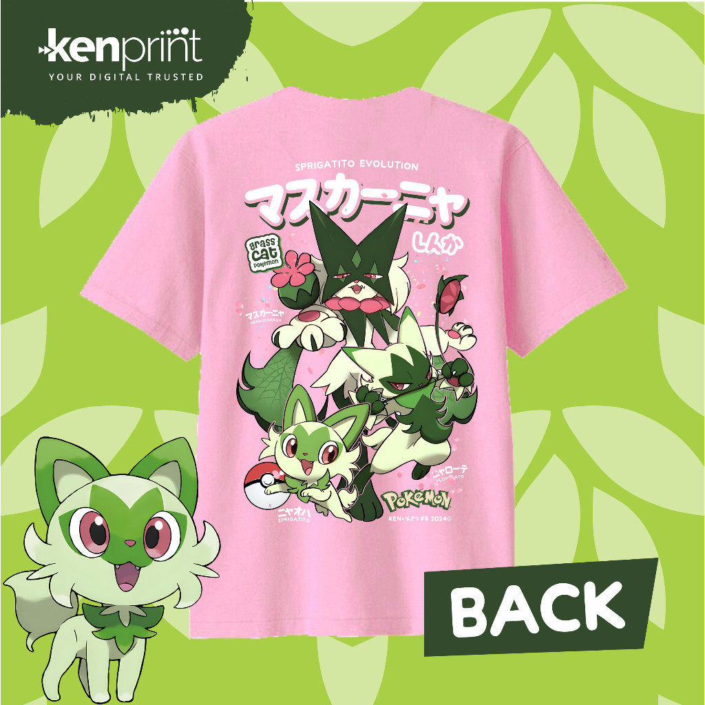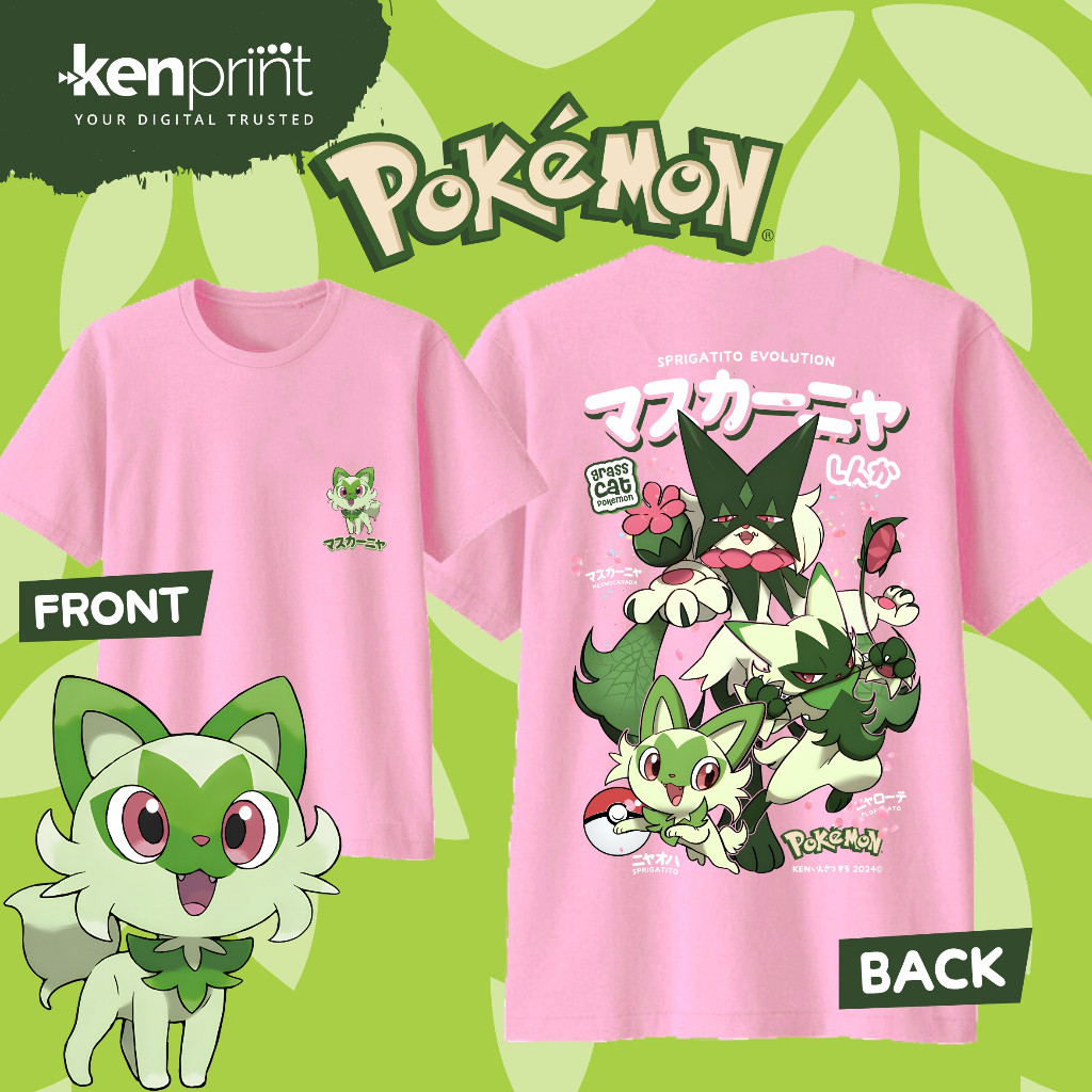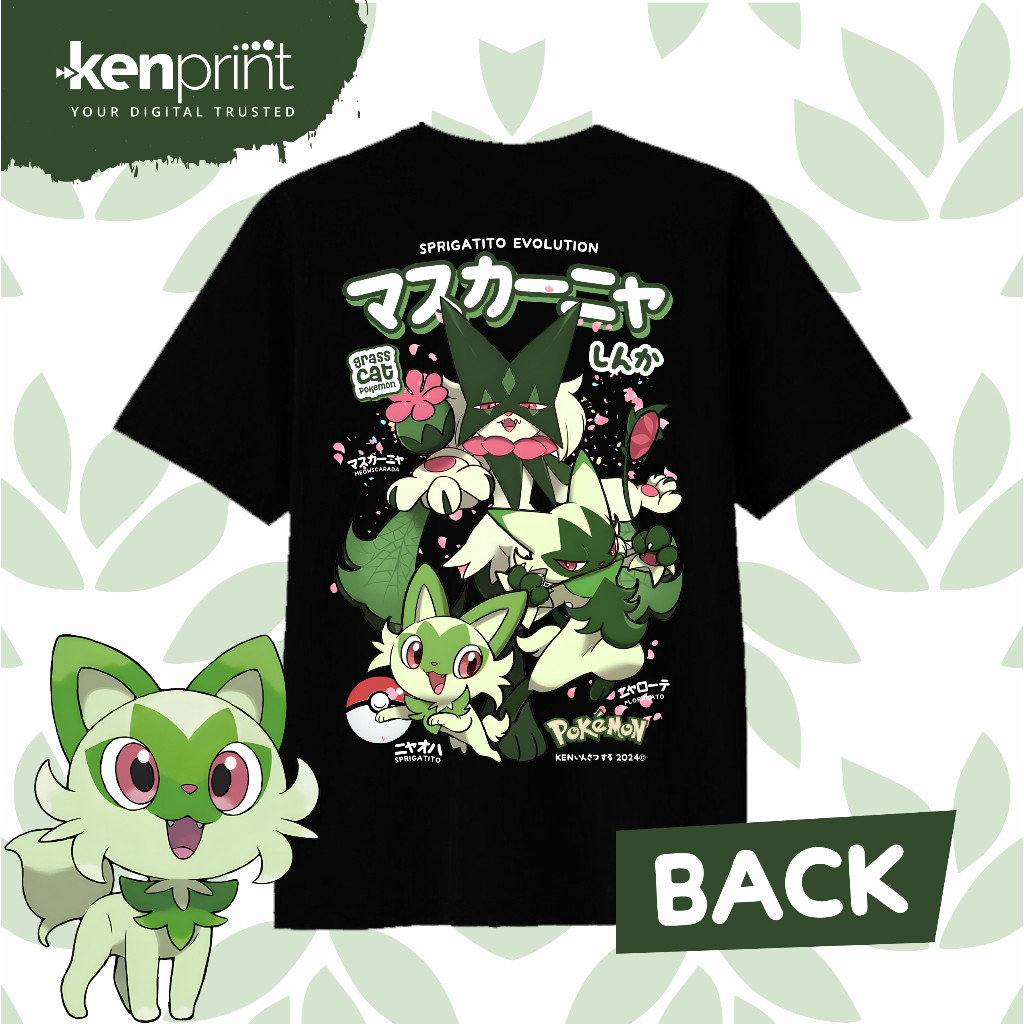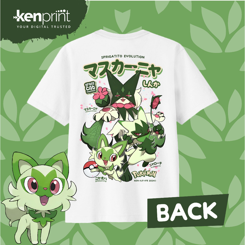 Pokemon T-shirt | Sprigatito | Floragato | Meowscarada EVOLUTION | Non Official | Cotton 30's Premiu
