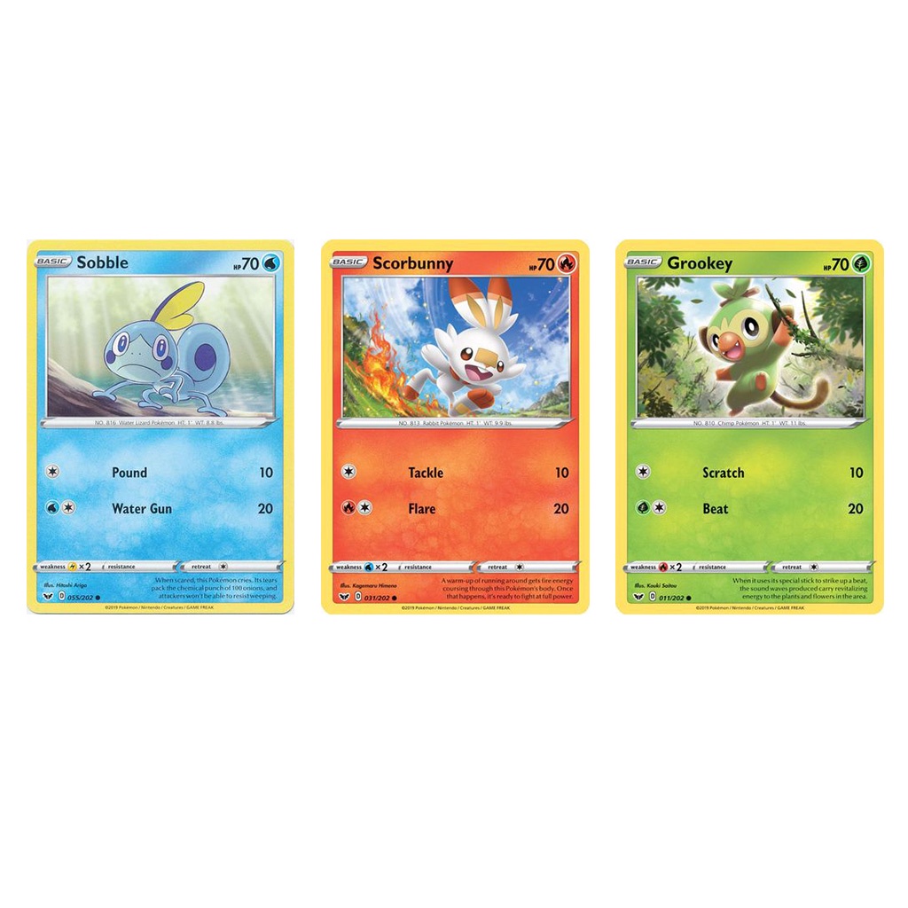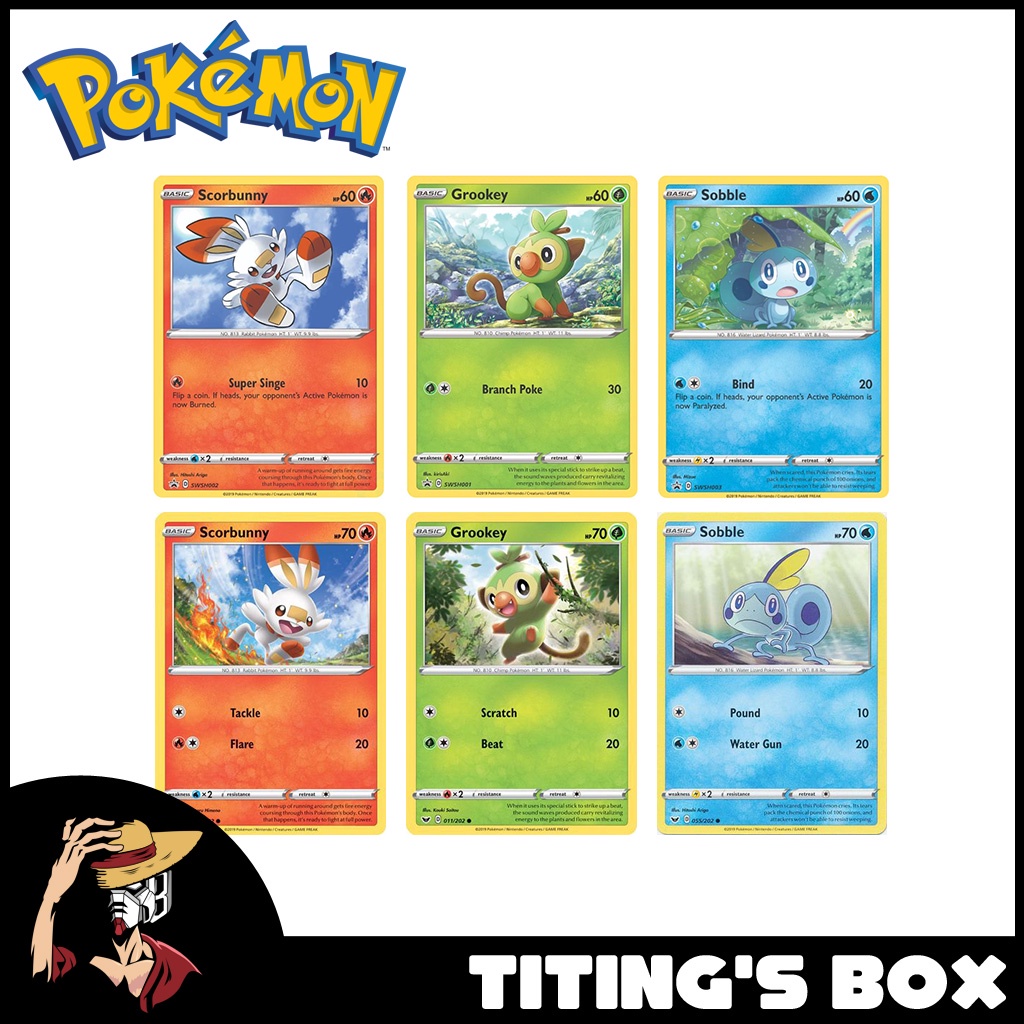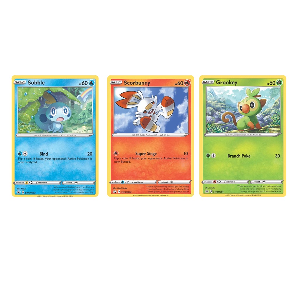 Pokemon TCG Galar Starter Pokemon Grookey, Scorbunny, Sobble (Common & Black Star Promo)