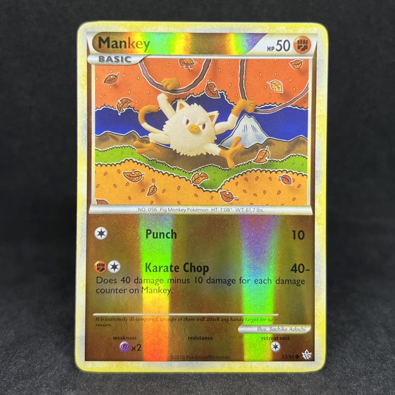 Pokemon TCG Mankey Reverse Holo Common 53/95 2010 Heart Gold Soul Silver Unleashed Trading Card Game