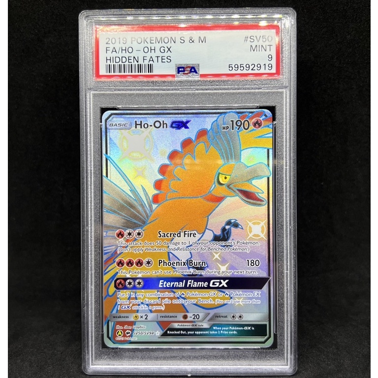 Pokemon TCG PSA 9 Shiny Ho-Oh GX Full Art Ultra Rare Mint SV50/SV94 2019 Hidden Fates Graded Trading
