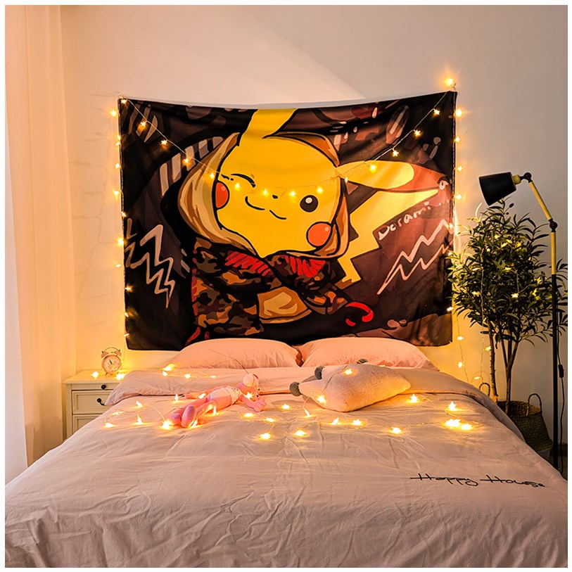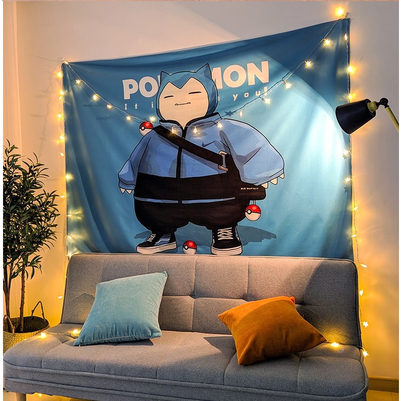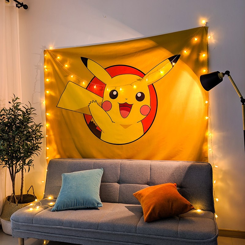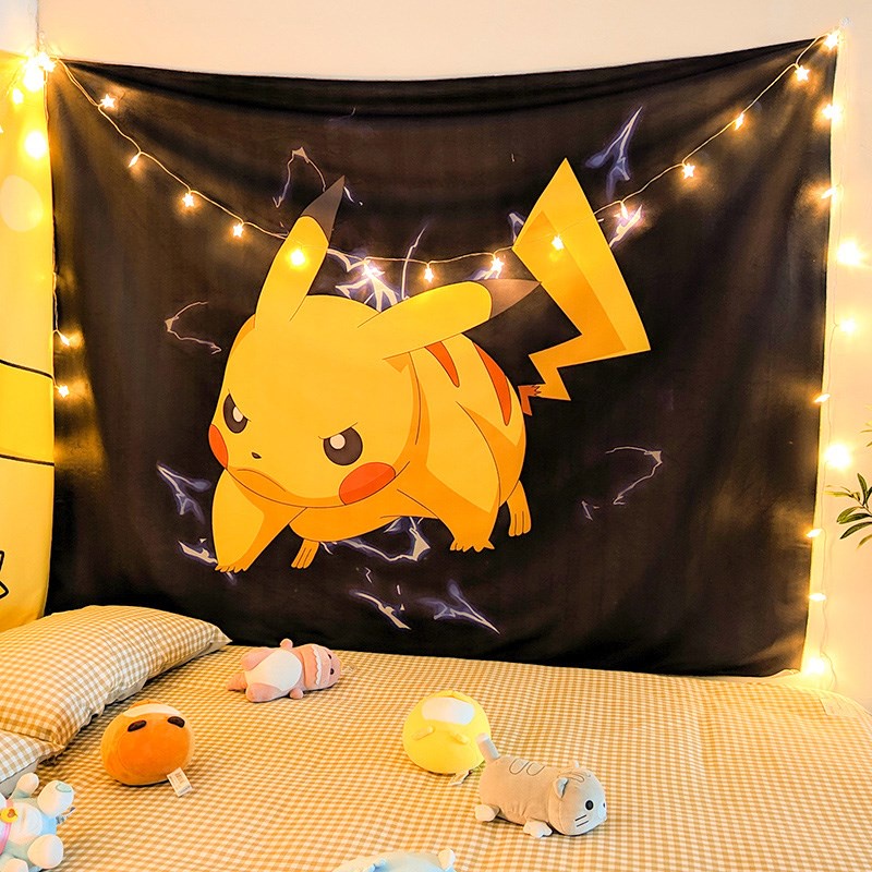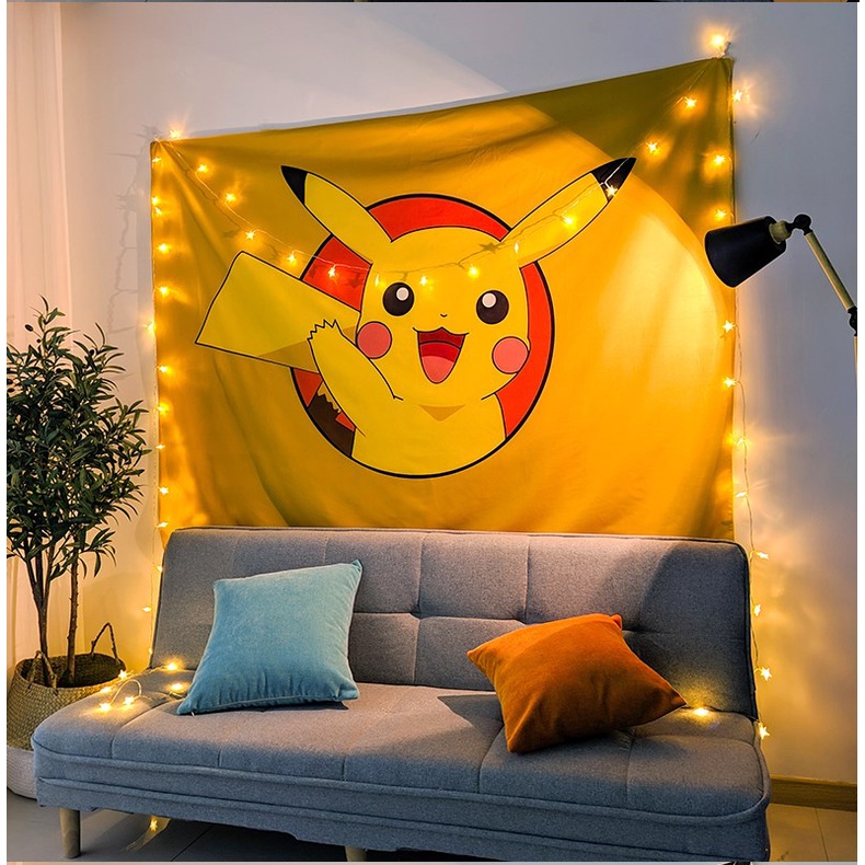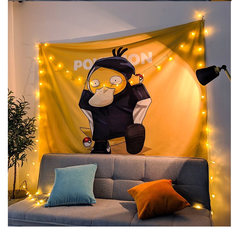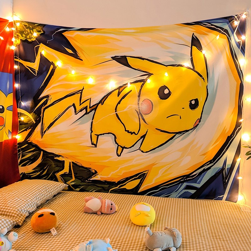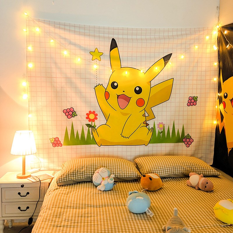 Pokemon hanging cloth kids room wall hanging Wall cloth Indoor cartoon Pikachu Kabi beast Frog Duck Live cloth art Wall decoration Background cloth Photo cloth