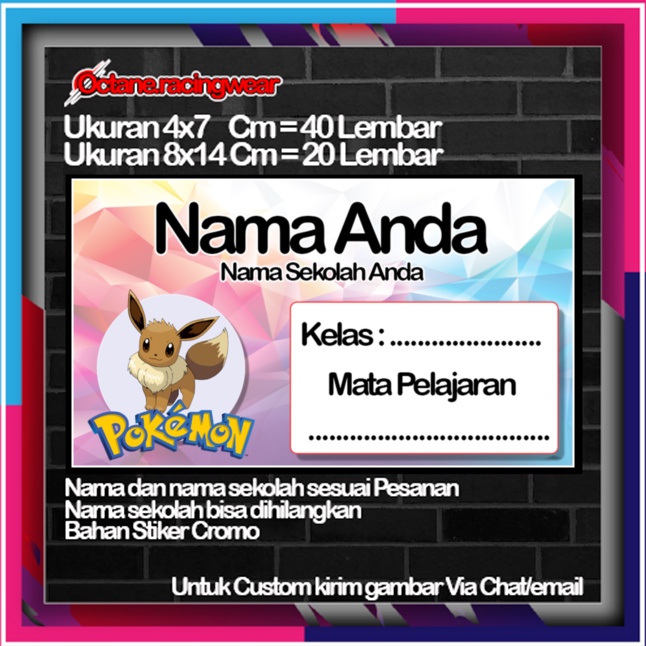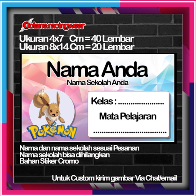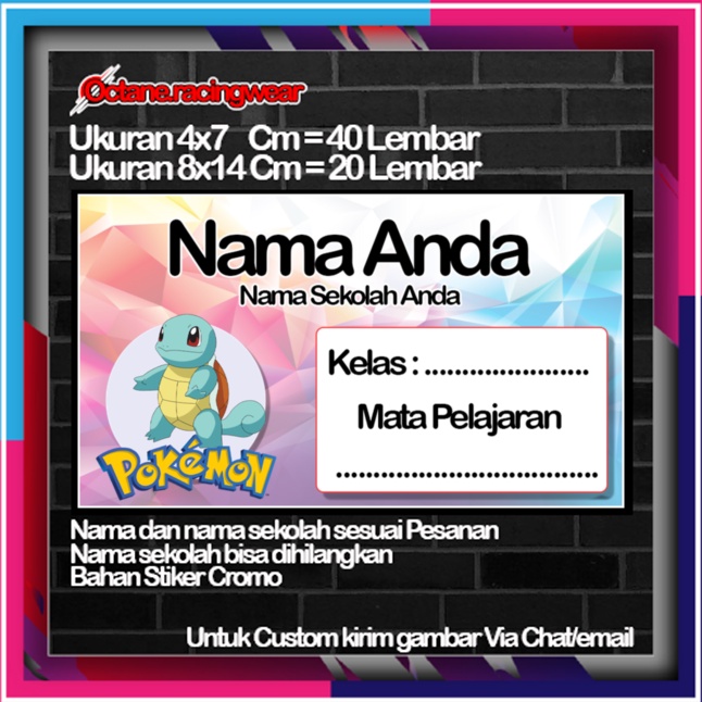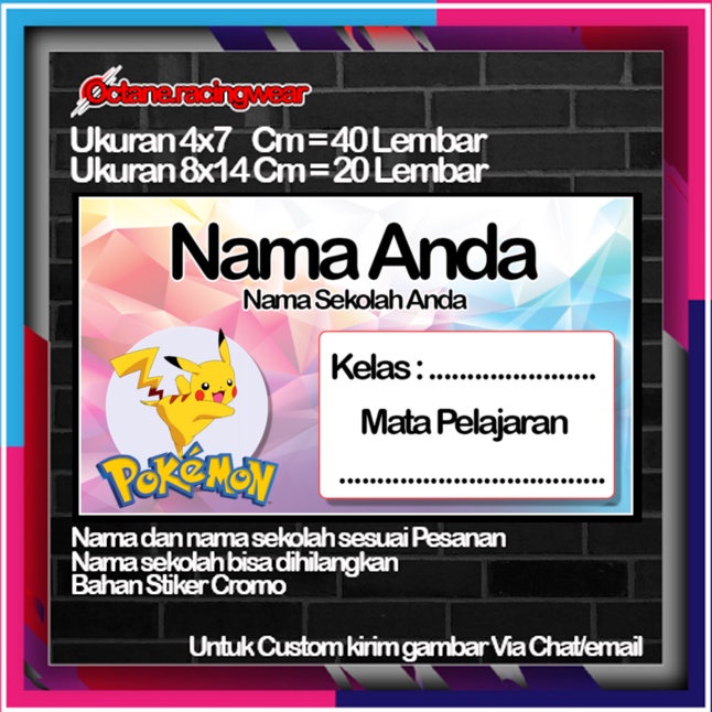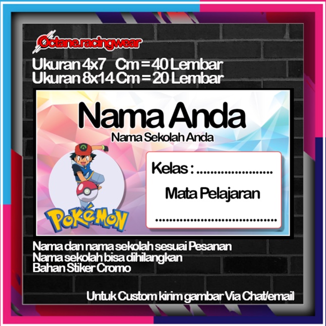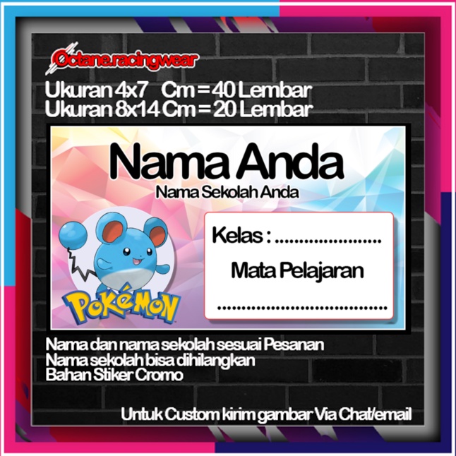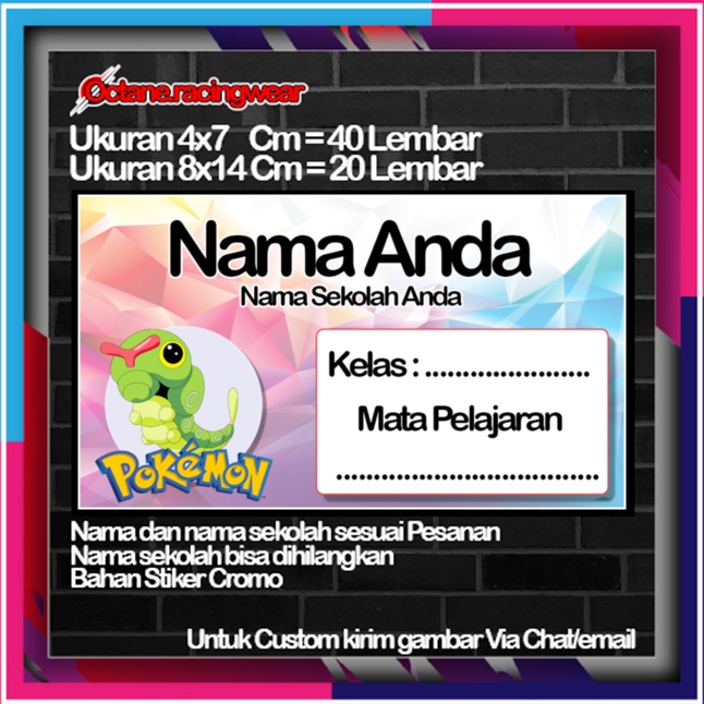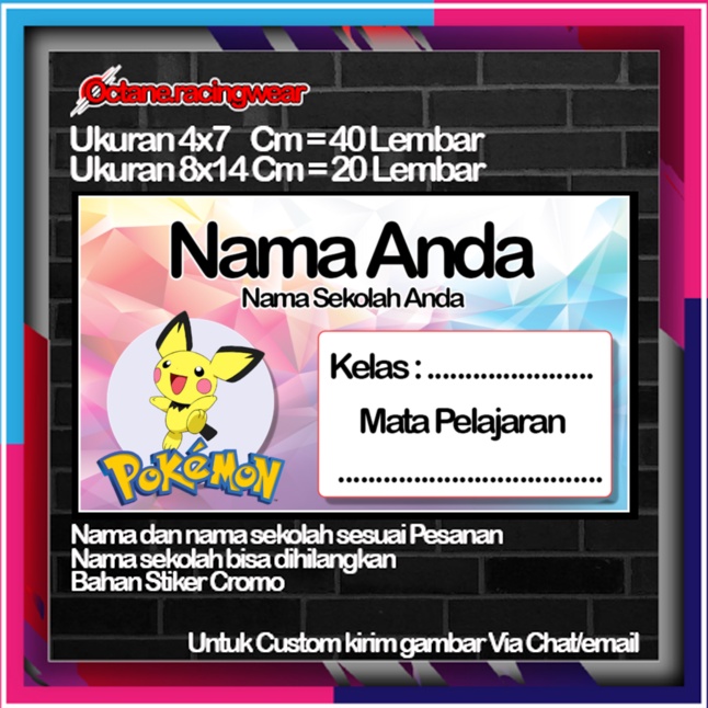 Pokemon pikachu pikacu Stickers Cute Character Custom Lebel Name cromo 20 Different Variants Of Octane School Leftright No. 10