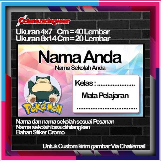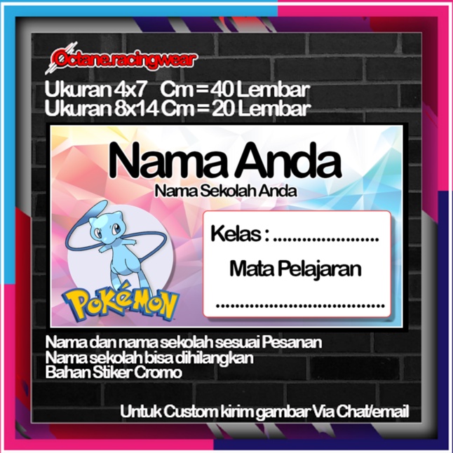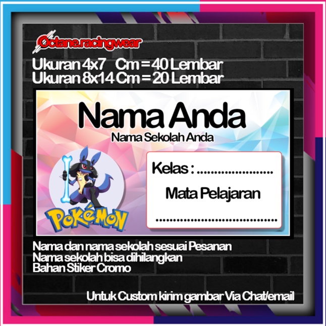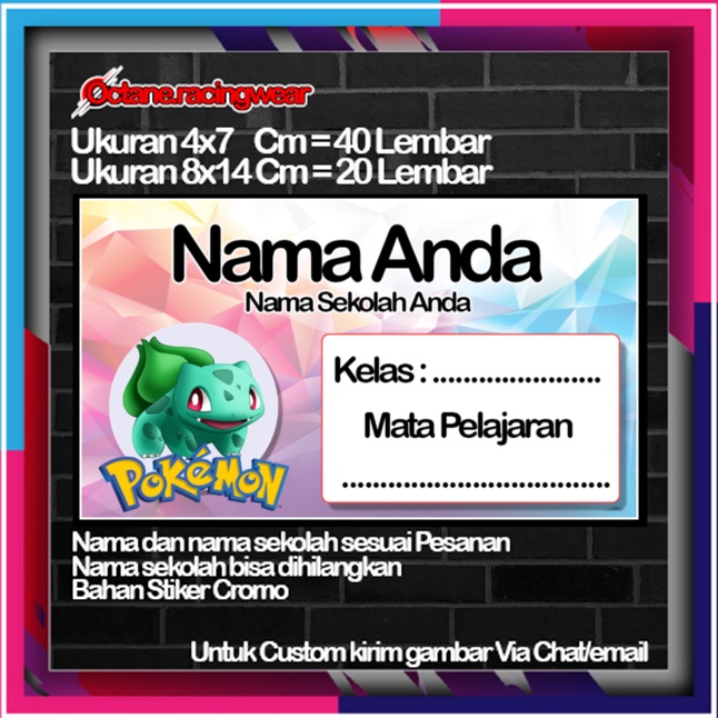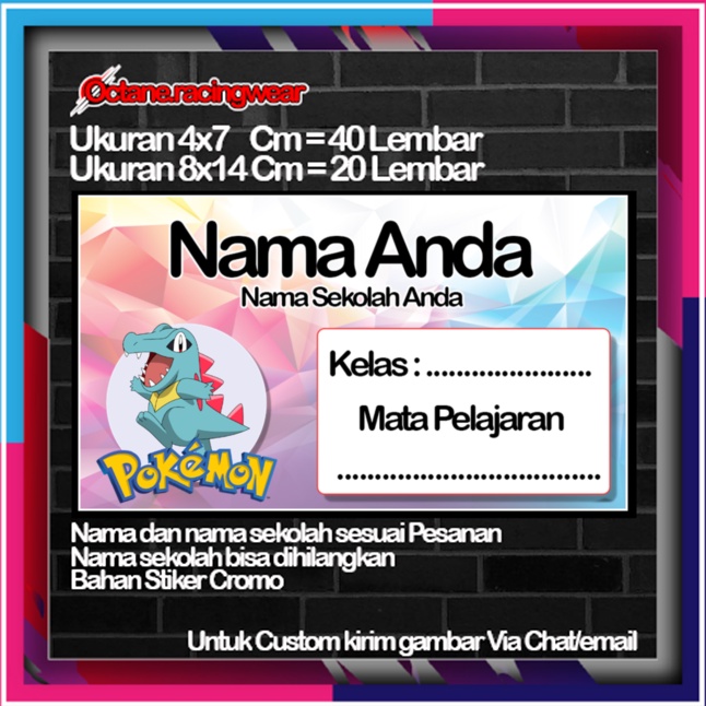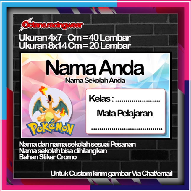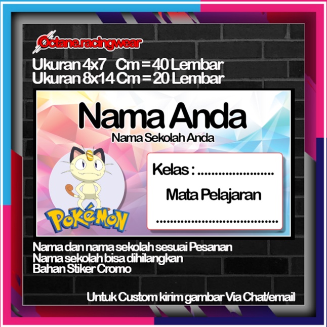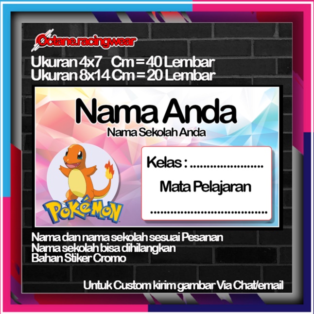 Pokemon pikachu pikacu Stickers Cute Character Custom Lebel Name cromo 20 Different Variants Of Octane School Leftright No. 10