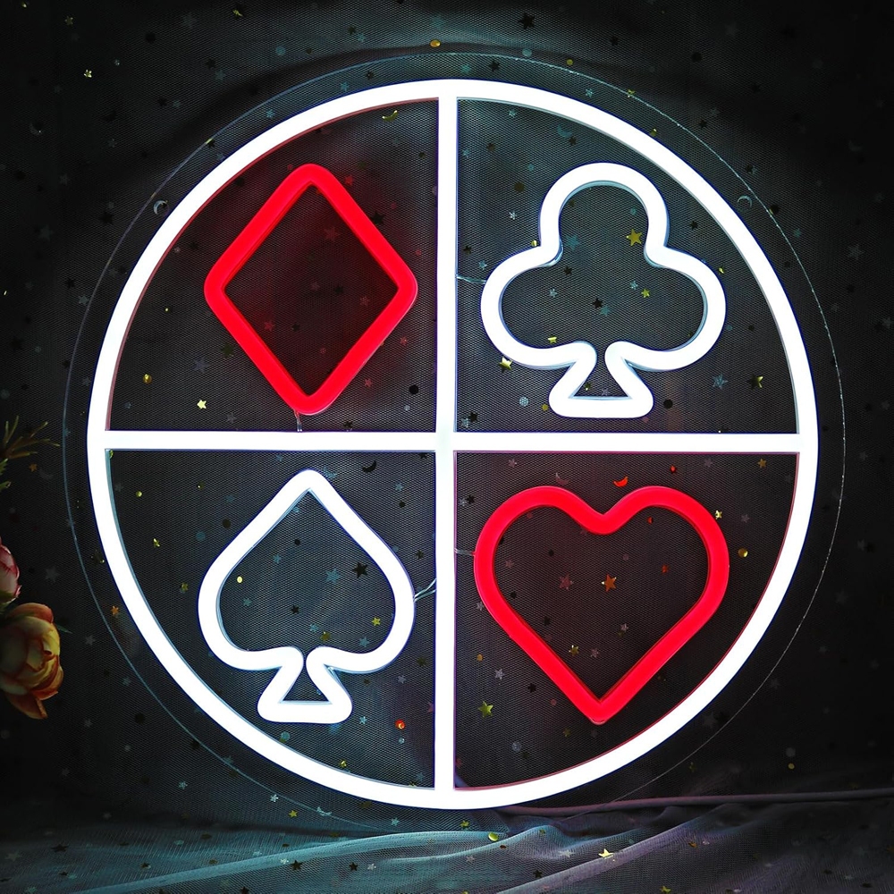 Poker Neon Sign, Playing Cards Neon Signs for Wall Decor Casino Game Room Art, USB Powerd LED Gamer Neon Light for Bar Club Cafe, Decoration, Birthday Gift