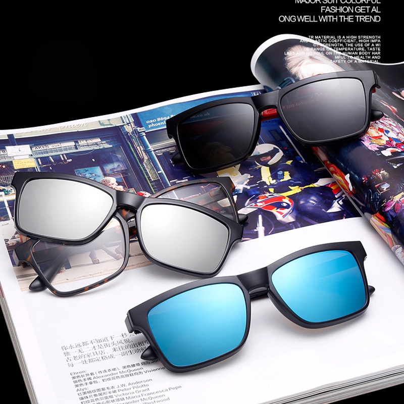 Polarized Magnetic Sunglasses Clip Myopia Square Unisex Clip Polaroid Snap Clip on Magnetic Glasses