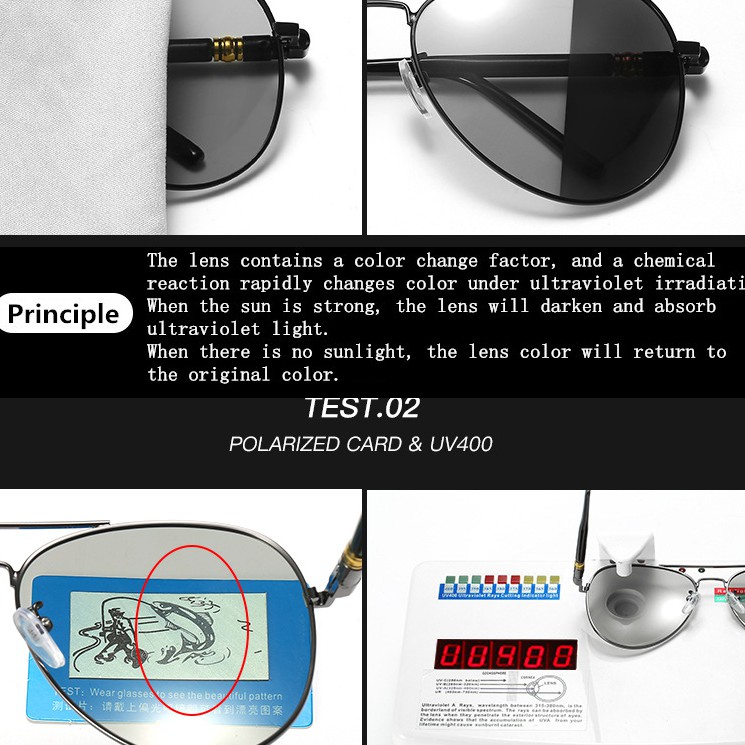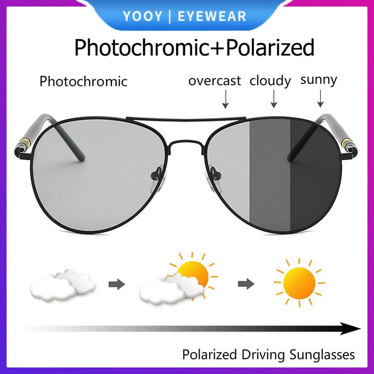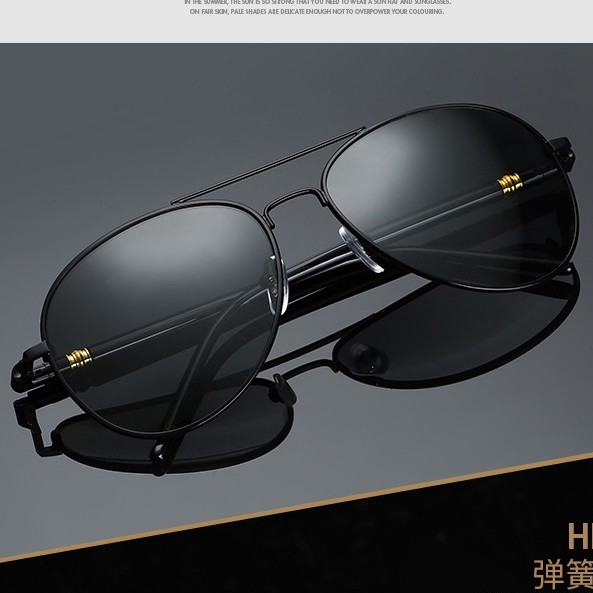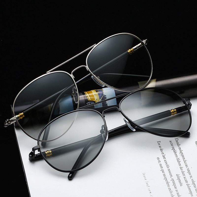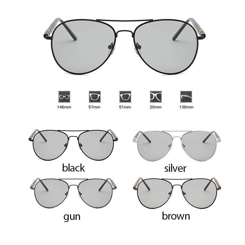 Polarized Photochromic Driving Sunglasses Spring Temple Glasses Aviator Eyewear For Men Women