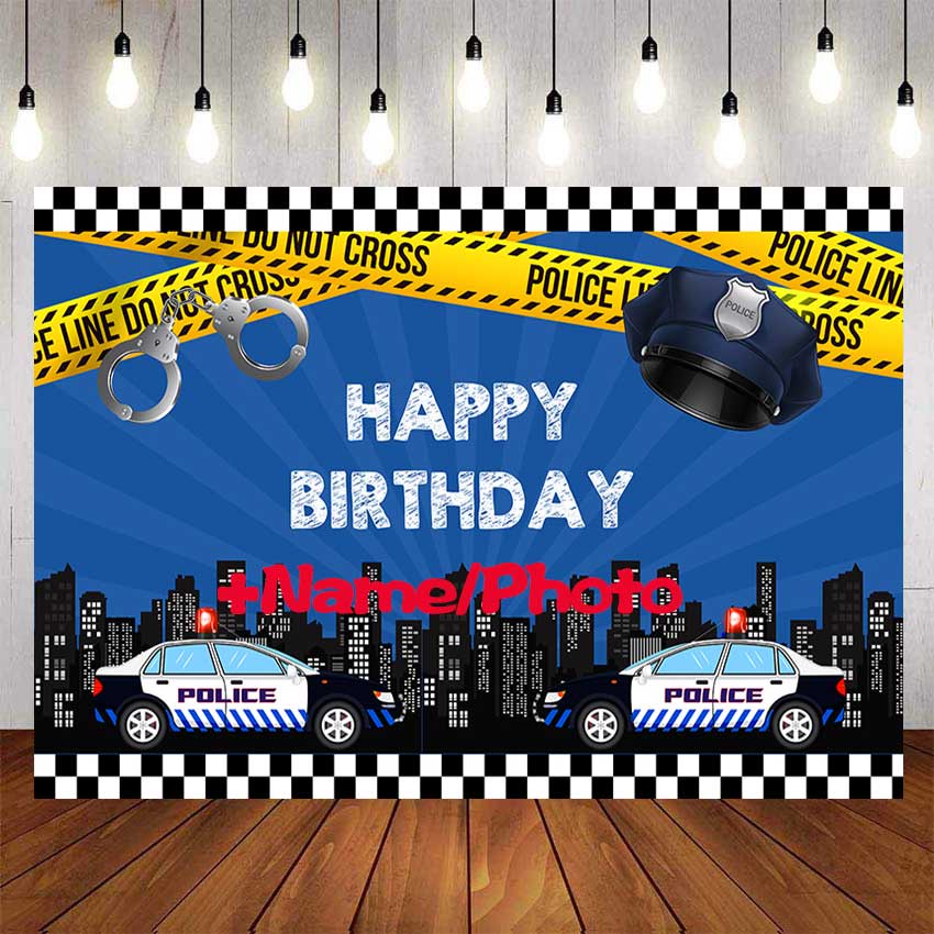 Police Car Backdrop For Photography Baby Shower For Boy Blue Background Birthday Party Decor Custom Name Photo