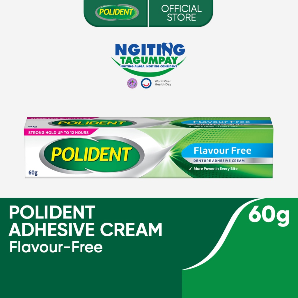 Polident Denture Adhesive Cream Flavor-Free 60g up to 12-hr Strong Kapit, Gum Comfort, Food Blocker