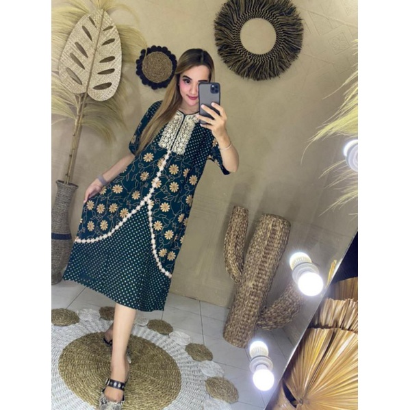 Polka Flower Arabic Neighborhood | Rayon SUPER GRADE A | Zipper Front Zipper | Milo Lace