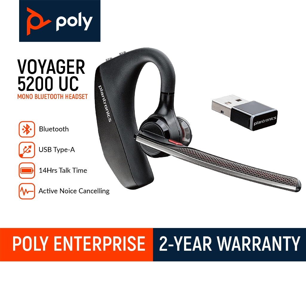 HP Poly Voyager 5200 UC Mono Bluetooth Headset With USB-A Adapter And Charging Case