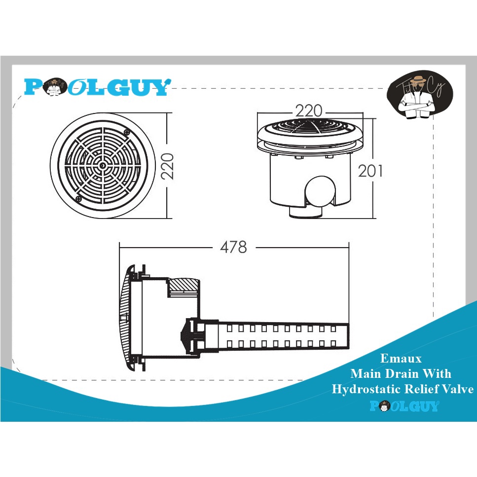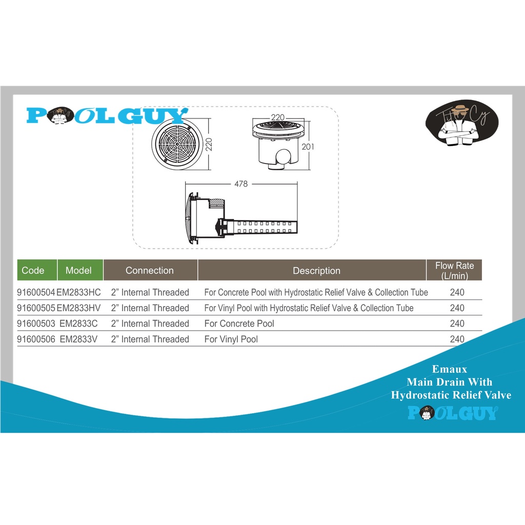 PoolGuy EMAUX 2" Main Drain With Hydrostatic Relief Valve Pressure Release Valve for Swimming Pool