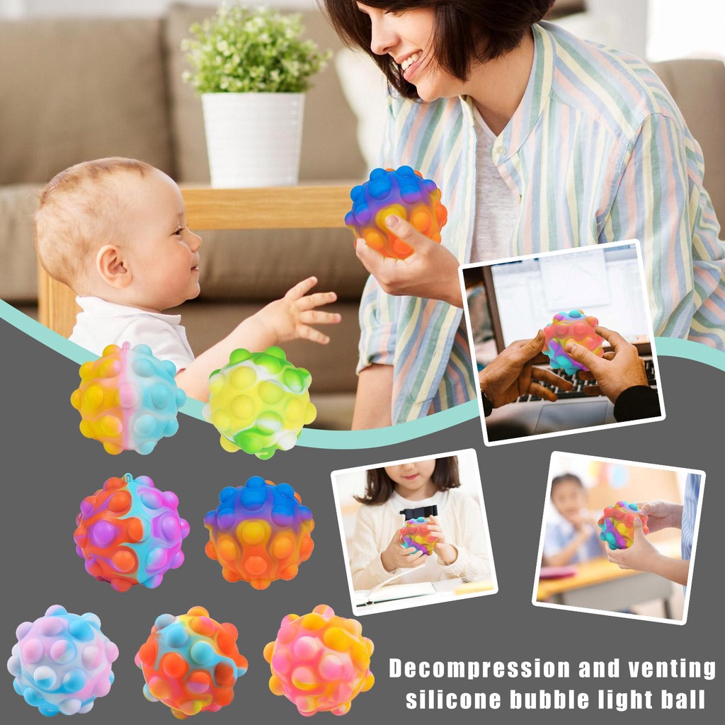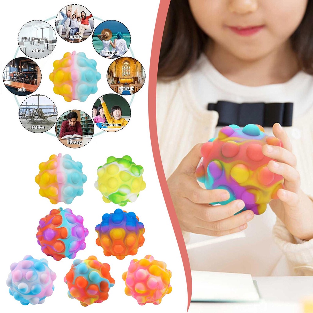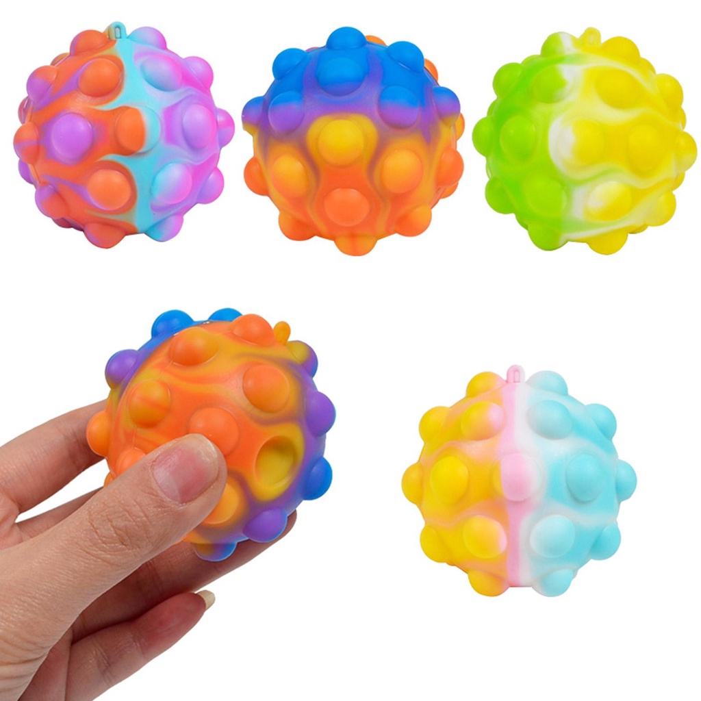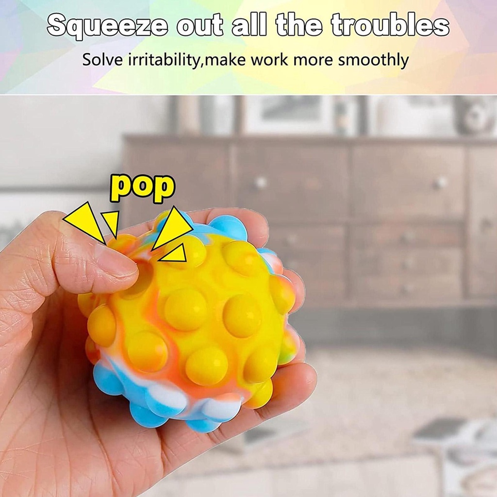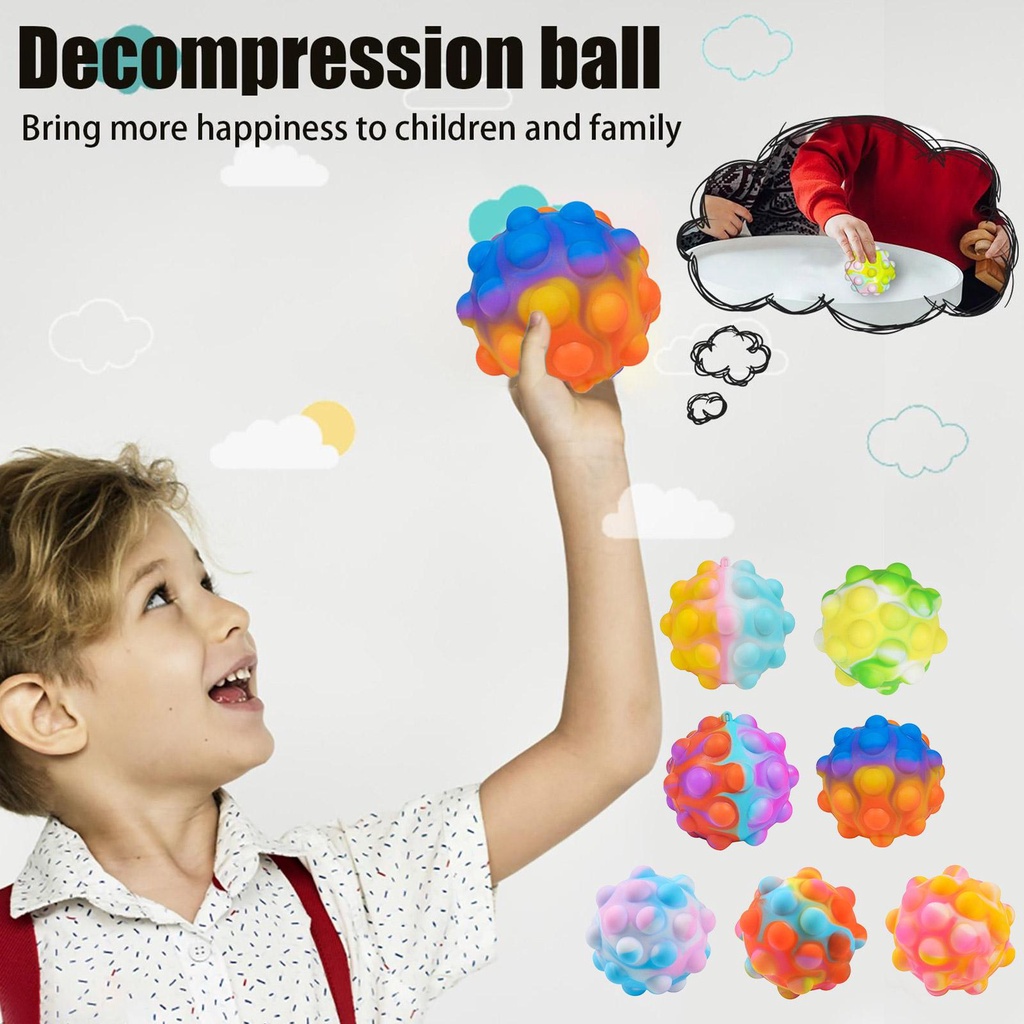 Pop It Ball Fidget Toy 3D Rainbow Silicone Bubble Ball Decompression Ball Fidget Toys Round Press Pinch Stress Sensory Push Bubble Squishy Toys Anti Stress Relief