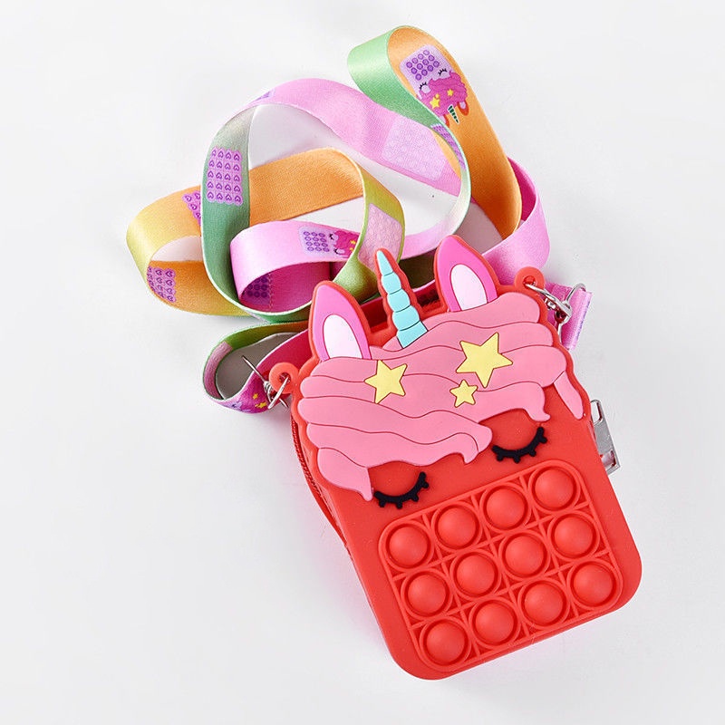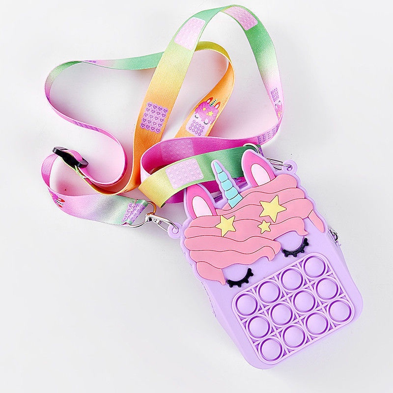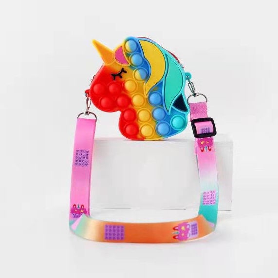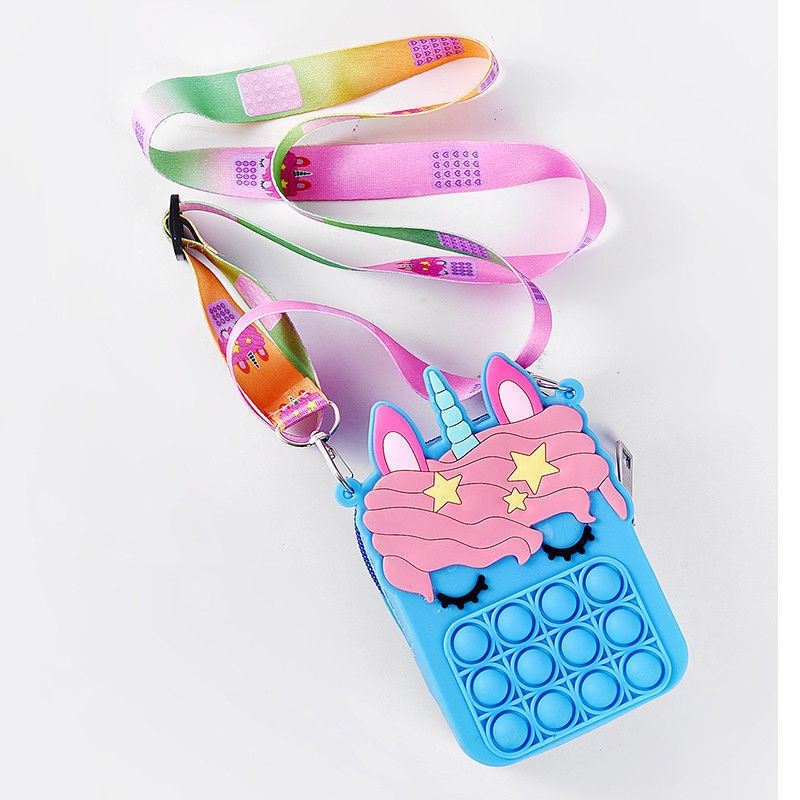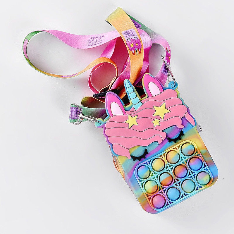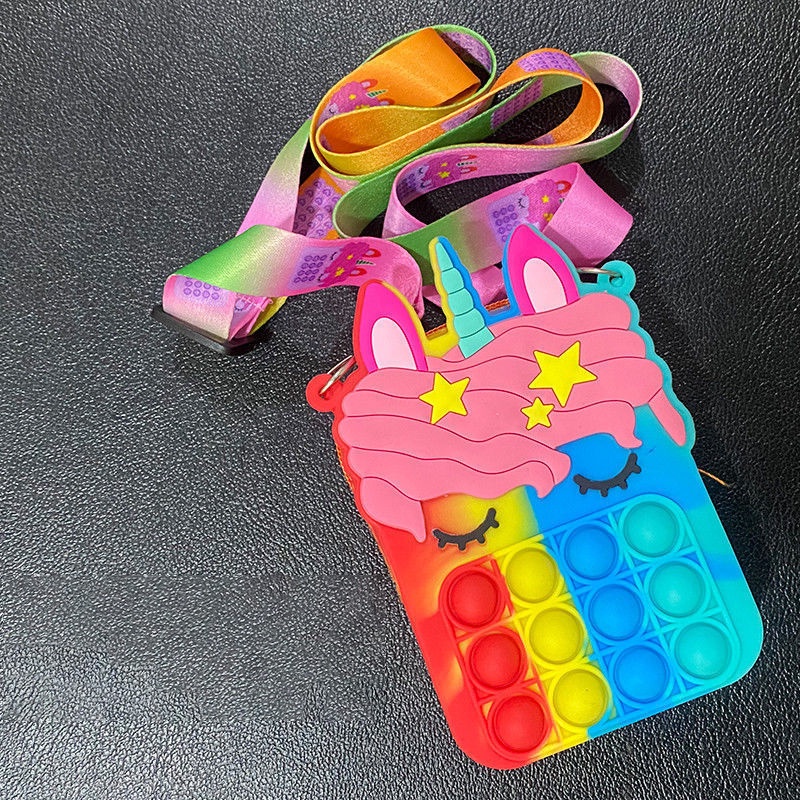 Pop It Fidget Toys murah Bubbles Push Popping Toy Gift for Kids Pop It Bag Fidget Bubble Stress Relief Toy Colourful Unicorn Rainbow Coin Purse Bag For Kids Accessories