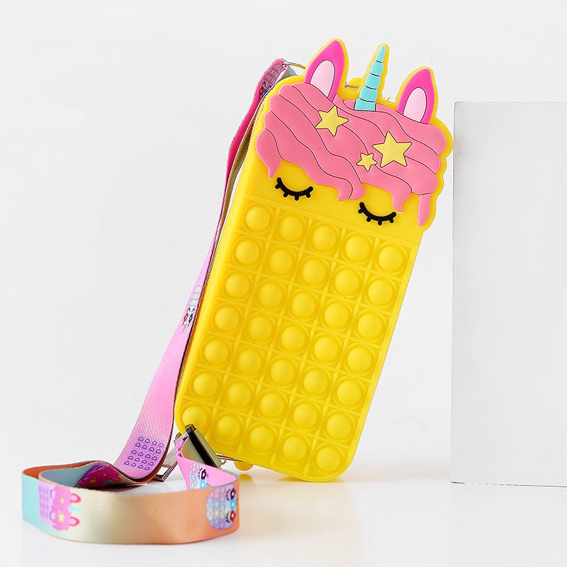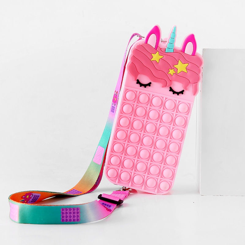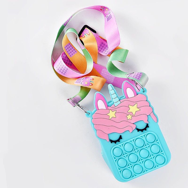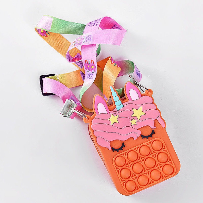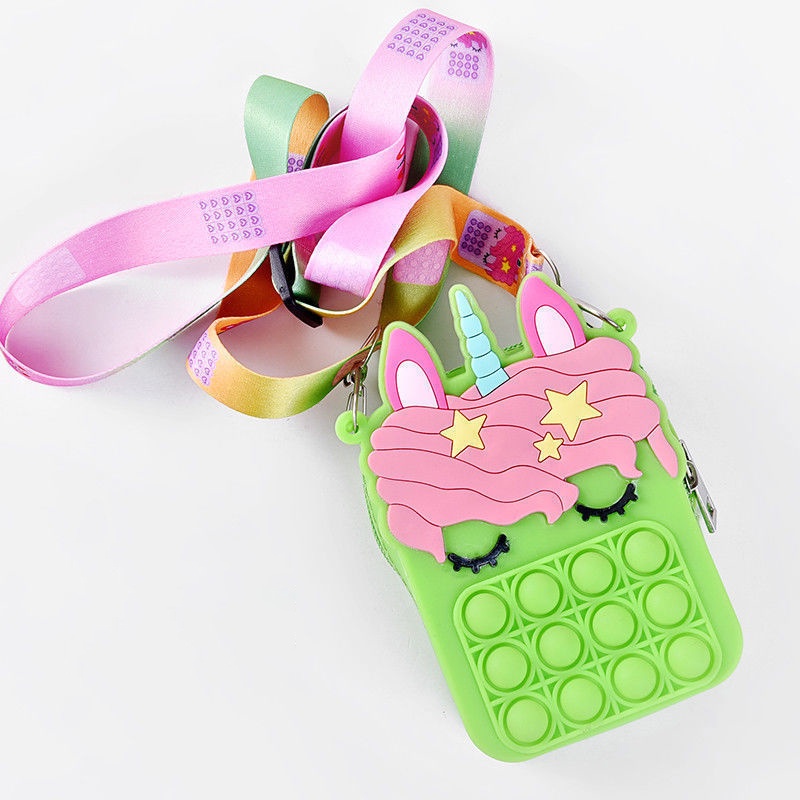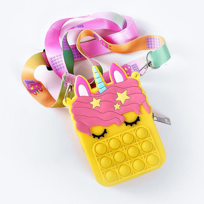 Pop It Fidget Toys murah Bubbles Push Popping Toy Gift for Kids Pop It Bag Fidget Bubble Stress Relief Toy Colourful Unicorn Rainbow Coin Purse Bag For Kids Accessories