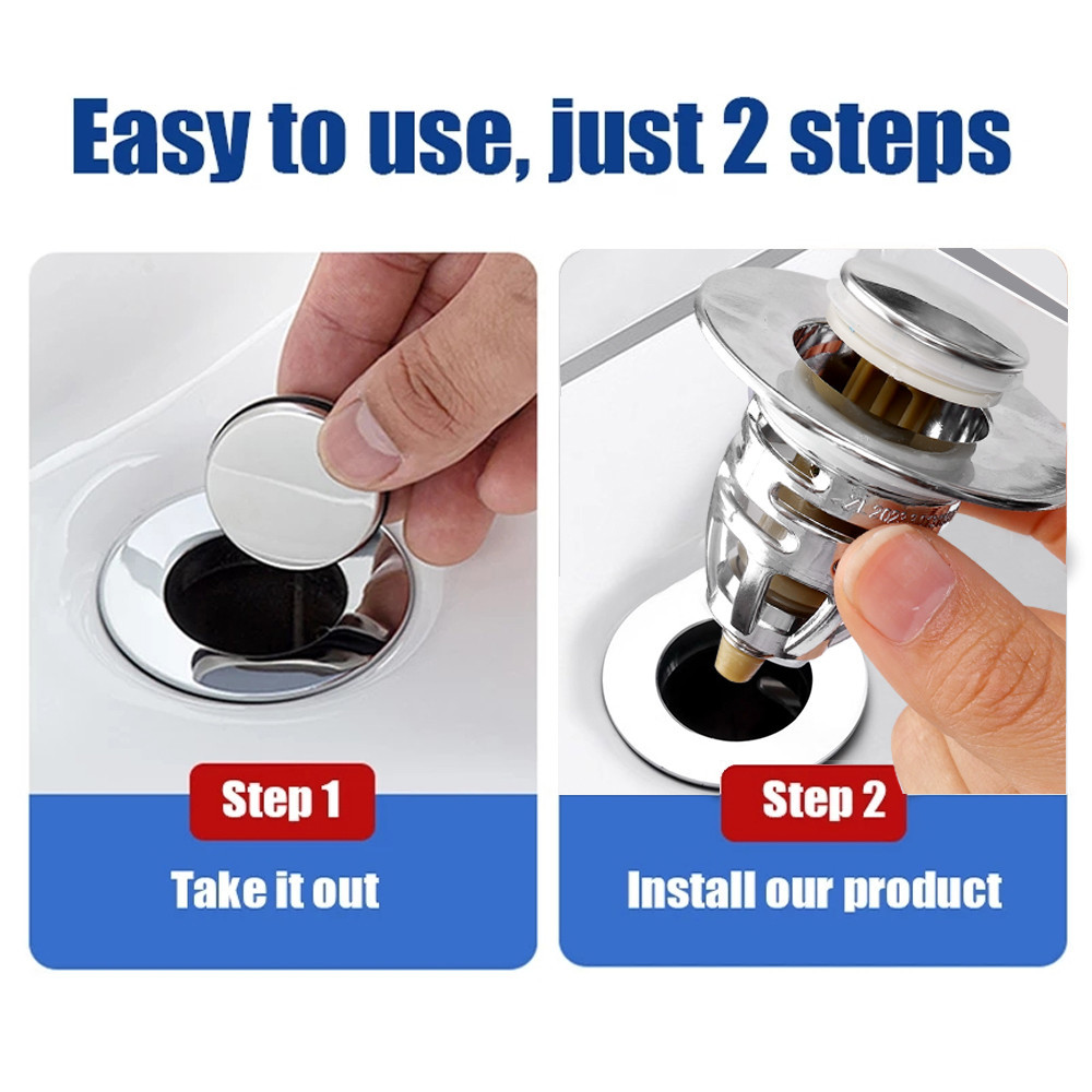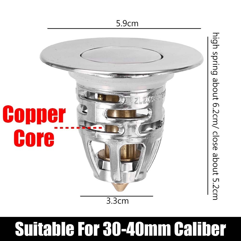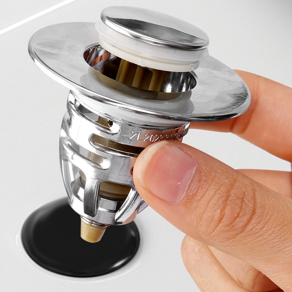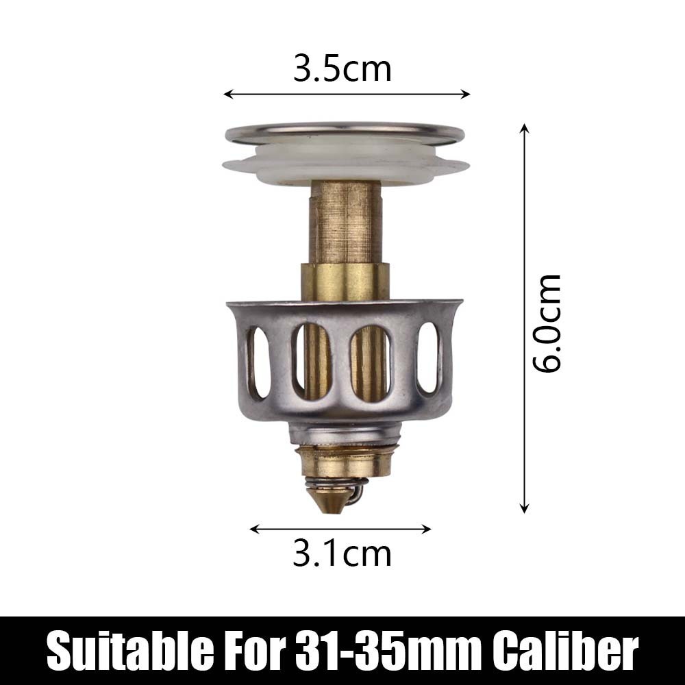Pop Up Drain Plug - Wash Basin Bounce Drain Filter - Kitchen Bathroom Sink Stopper - Anti-Clogging, Anti-Odor, Anti-Insect - Stainless Steel, Copper, Universal