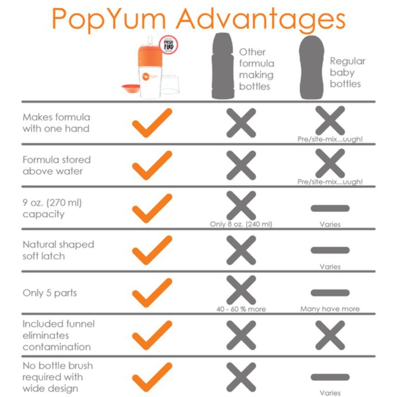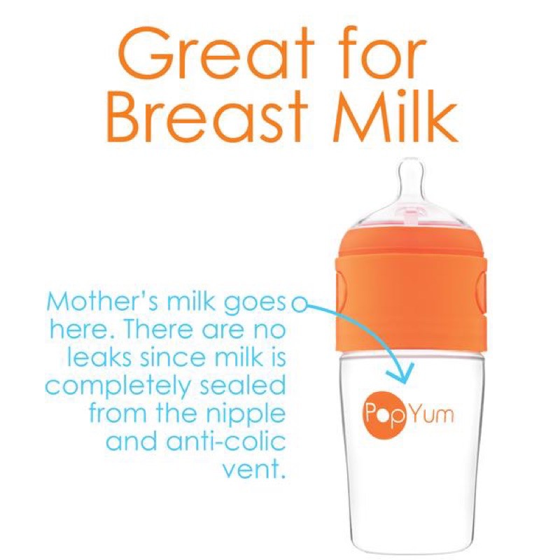 PopYum Bottle Pop Yum 9oz 9 ounce baby feeding bottle with Medium Flow Nipple 3 months above
