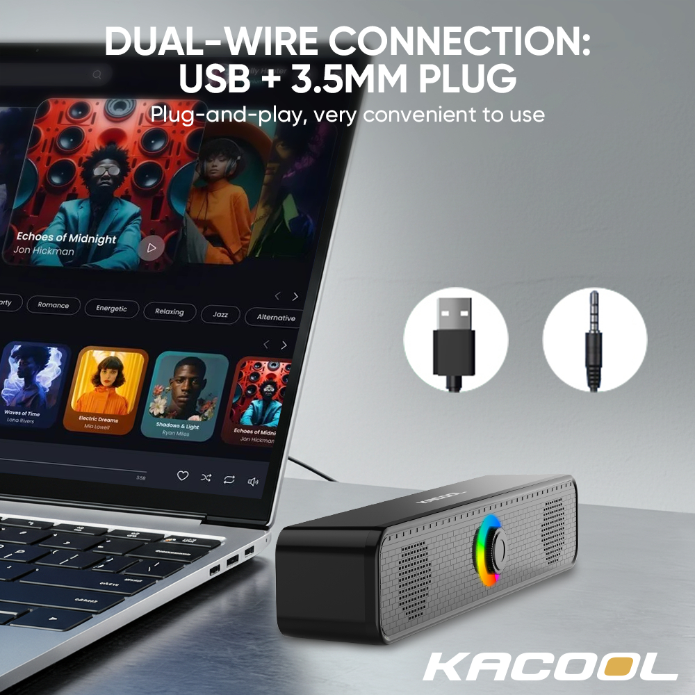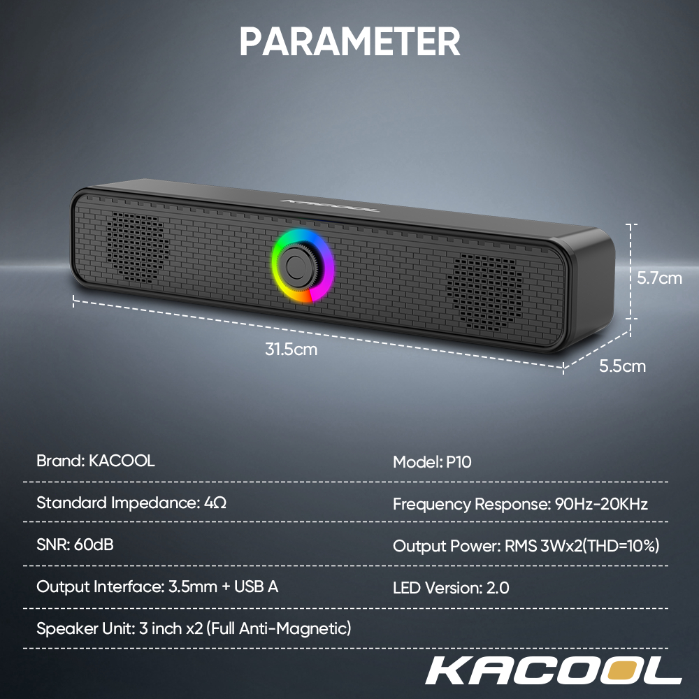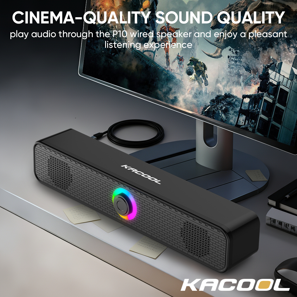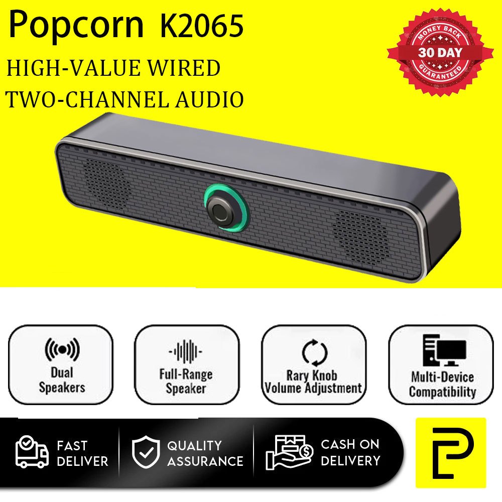 Popcorn K2065 PC Speaker Multi-Media Sound bar Wired Speaker RGB Stereo Sound Usb Home Office Audio