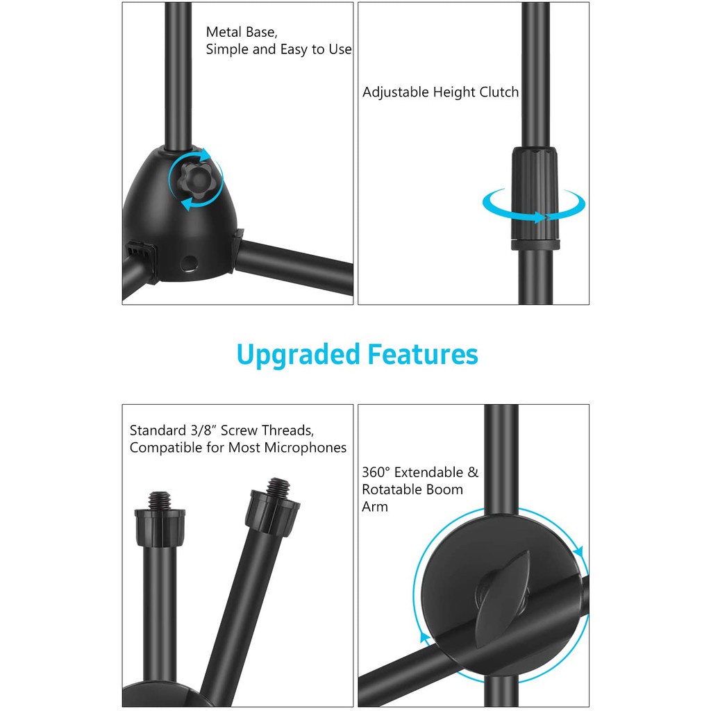 Popcorn Portable Microphone Stand Heavy Duty Adjustable Collapsible Boom Mic Pro Vlogging Streaming