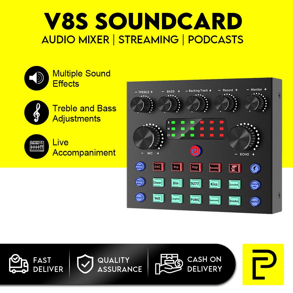 Popcorn V8S Sound Card Effects with Audio Mixer for Streaming, Podcast Streaming w/Voice Changer