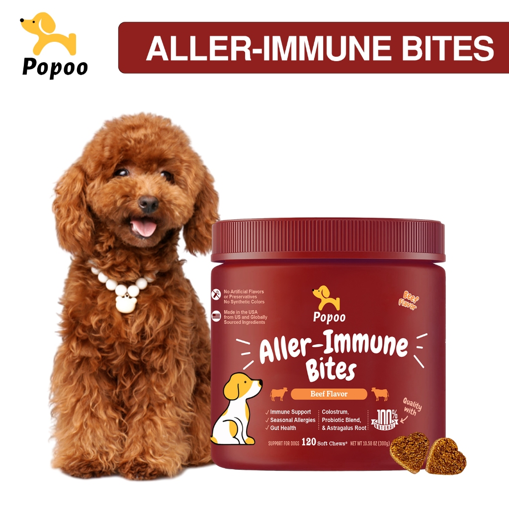 Popoo Aller-Immune Bites for Dogs Seasonal Allergies Support,Coat & Skin Health,Healthy Digestion