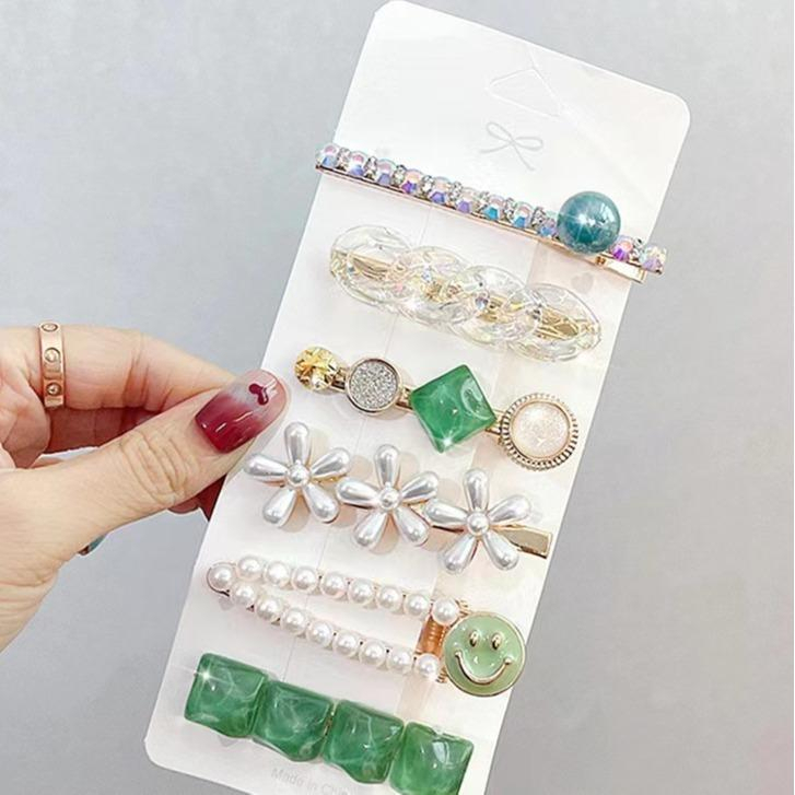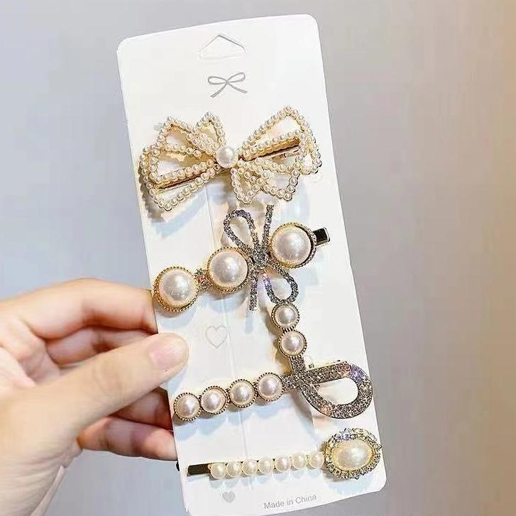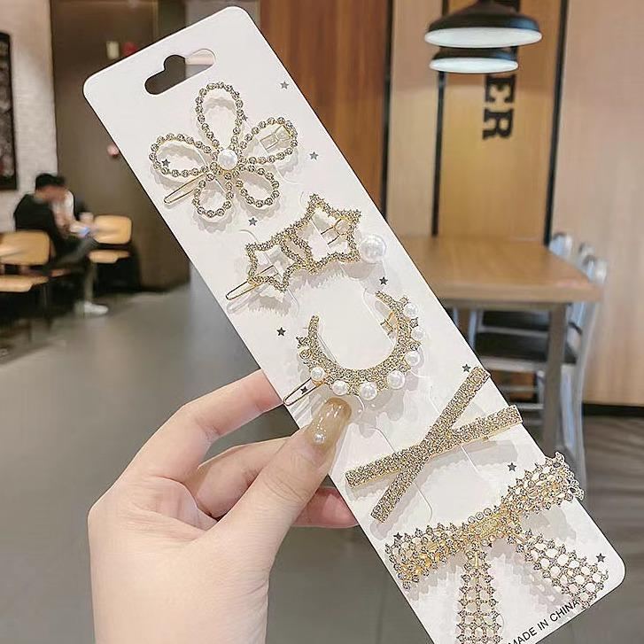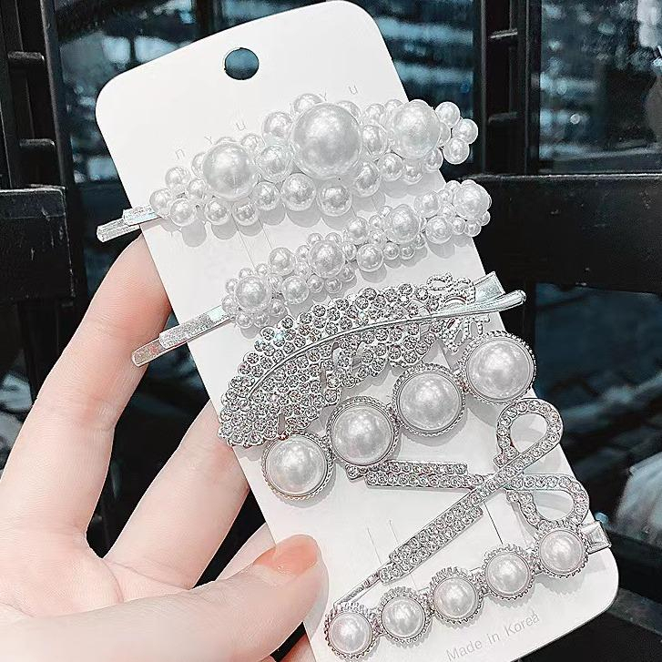 Popular feather hair clip scissors pearl alloy hair clip net red hair clip SET