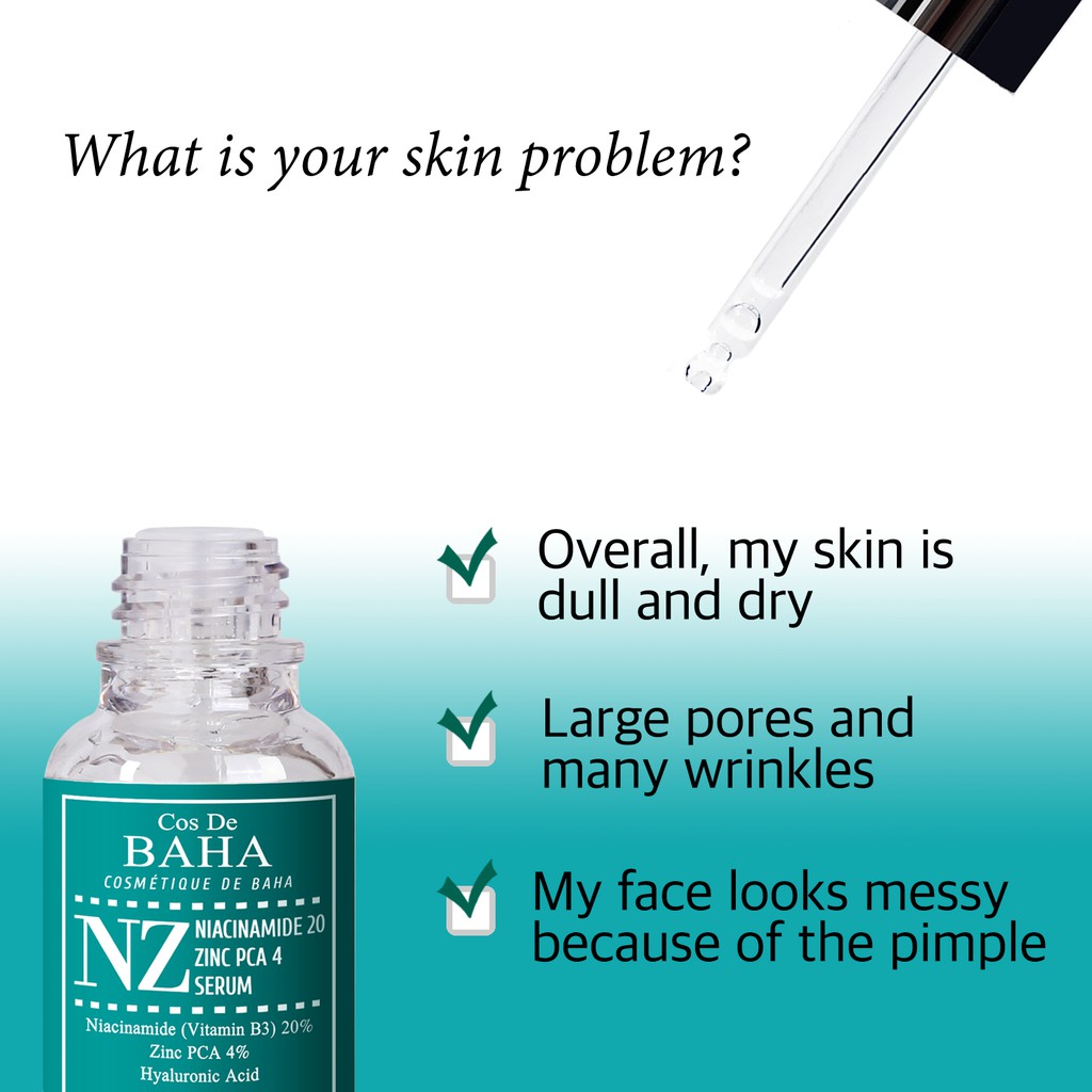 Cos De BAHA - Niacinamide 20% + Zinc 4% Serum for Face - Pore Reducer + Uneven Skin Tone Treatment + Diminishes pimple scars 1fl oz (30ml)