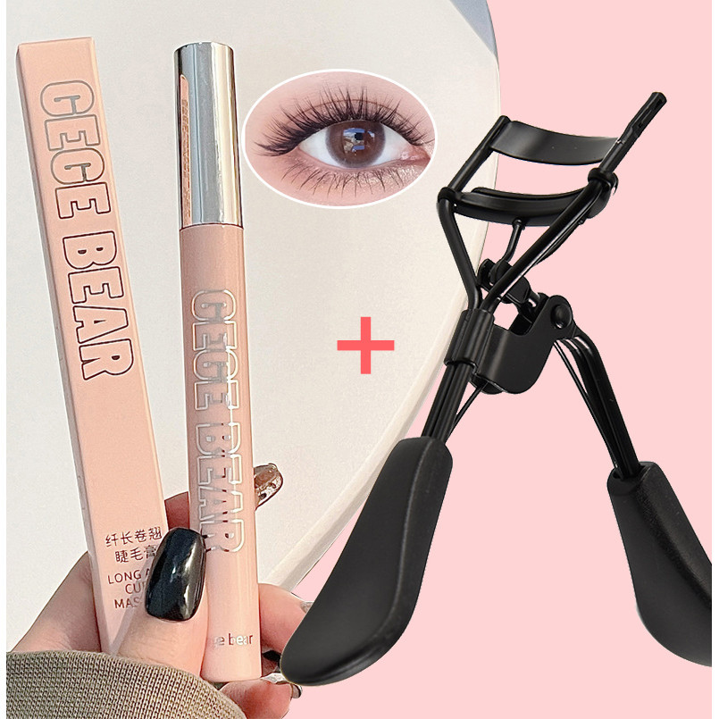 Gege Bear Mascara + Eyelash Curler Set 3D Waterproof Long Lasting Curly Eyelash Mascara