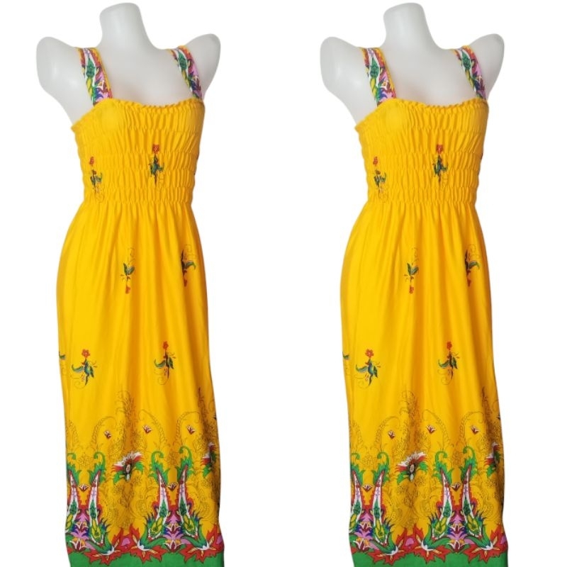 Long Dress | Smocking Daster | Spaghetti Duster | Flat Strap Dress COTTON SPANDEX fit to XL
