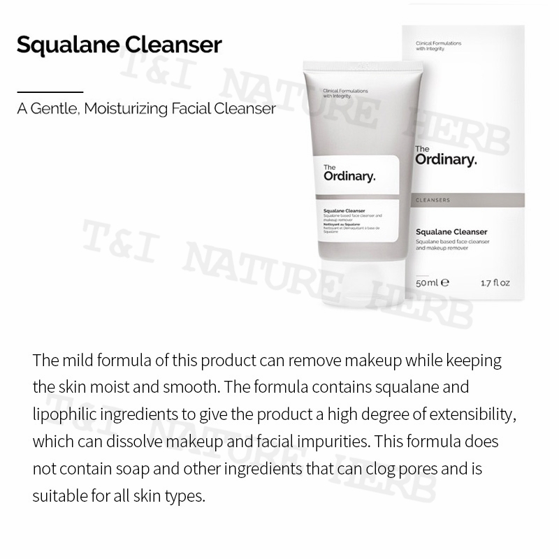 The Ordinary Squalane Cleanser 50ml | Gentle Hydrating Makeup Remover for Oil Control & Pore Care