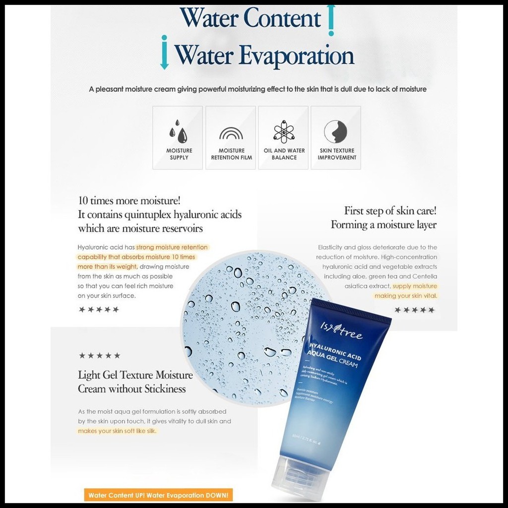 ISNTREE Hyaluronic Acid Aqua Gel Cream 100ml ✟ ☌