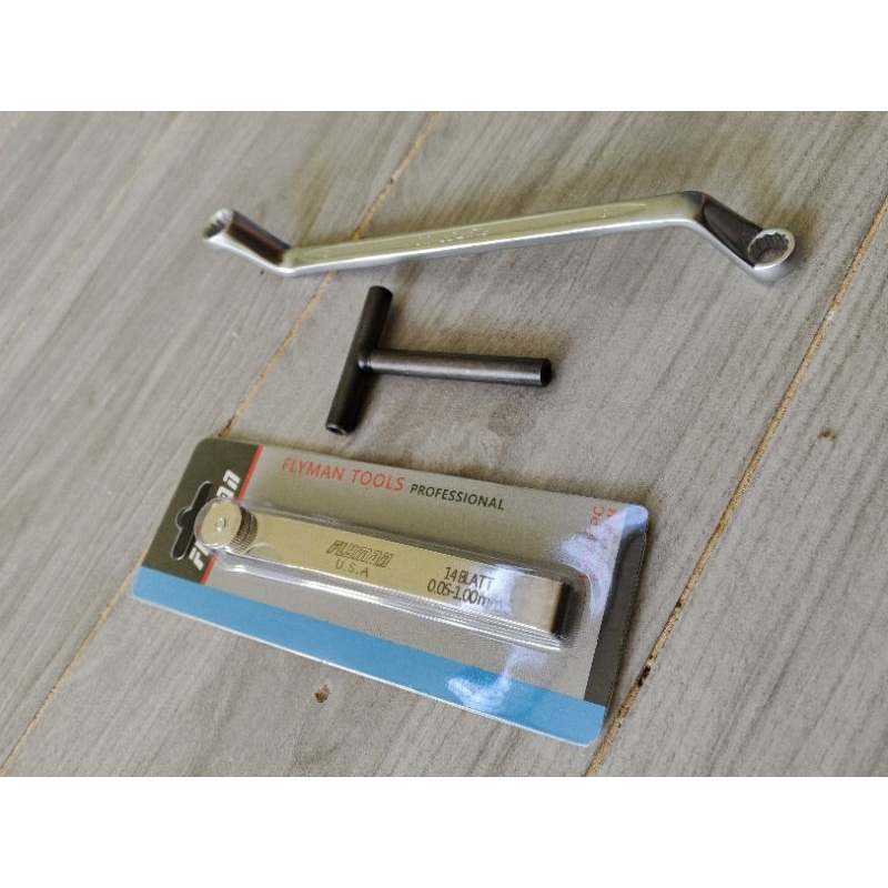 FLyman pang tune up set ( feeler gauge 14pcs) ( T-tapet set 8 9 10mm) (Back wrench 8x9mm)