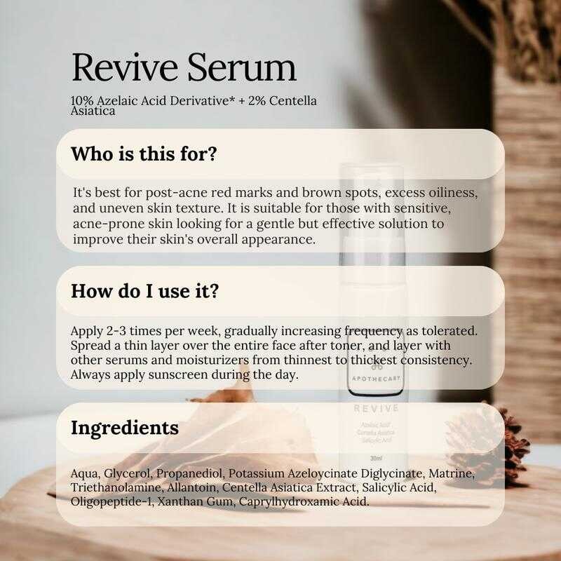 SOUL APOTHECARY : REVIVE Serum (Azelaic Acid* + Centella Asiatica Salicylic Acid Peptides)