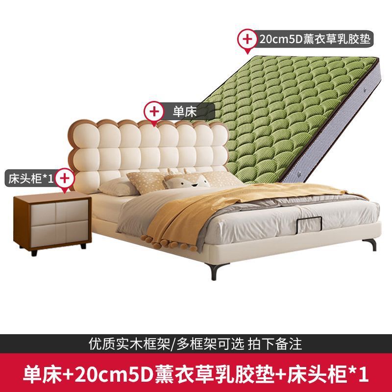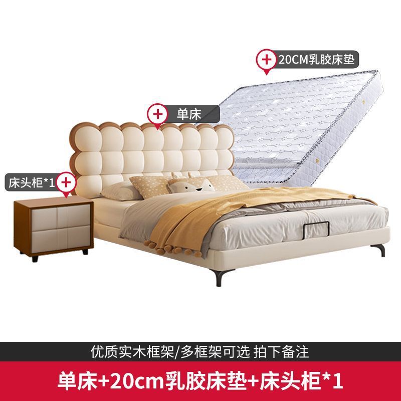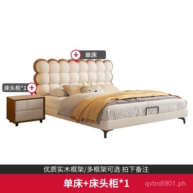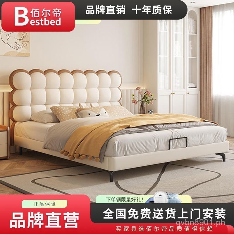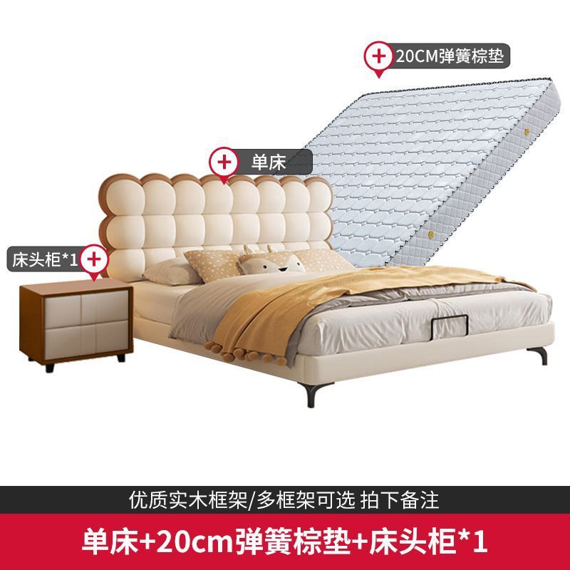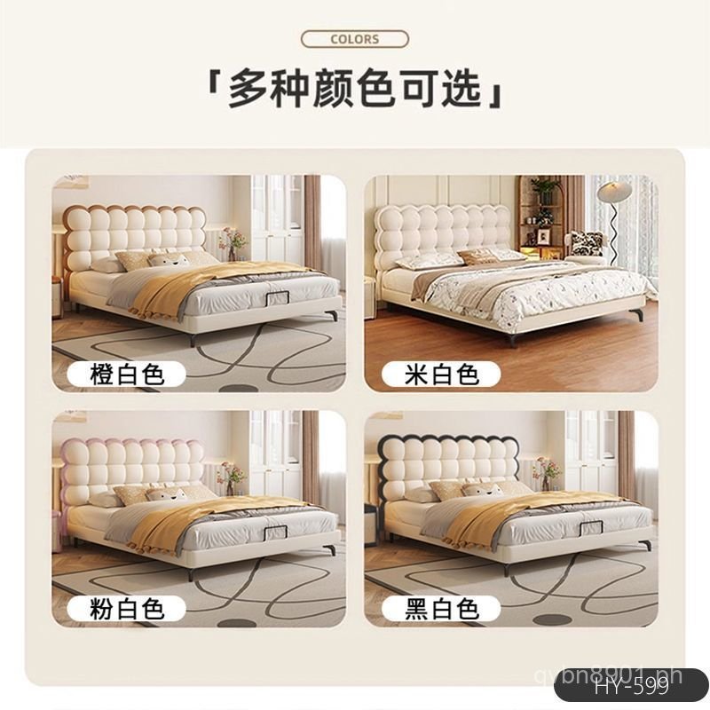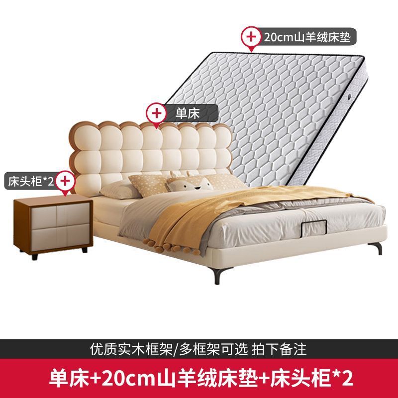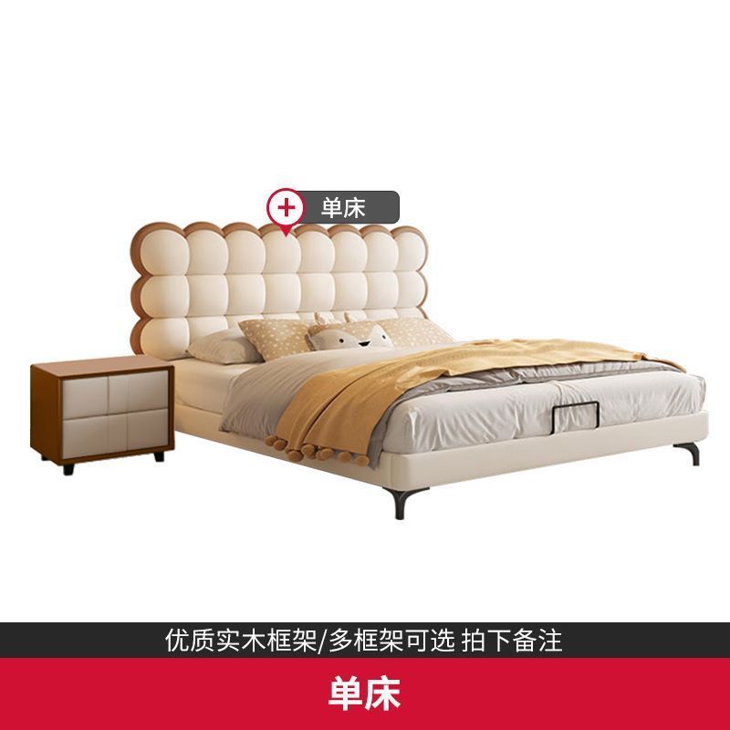 Luxury Bag Style Bed Light Creative Genuine Leather French Style Bed Biscuit Children's Bed Creamy Youth Soft Red BGXR