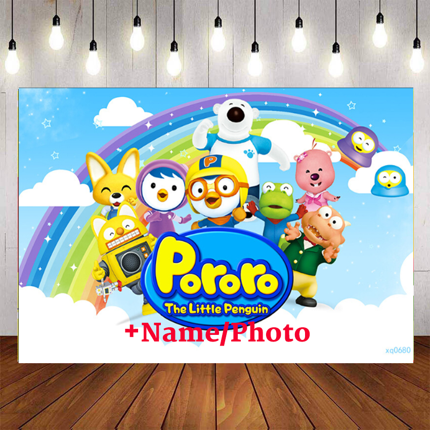 Pororo The Little Ponguin Backdrop For Photography Baby Shower Kids Blue Sky Background Birthday Party Decor Custom Name Photo