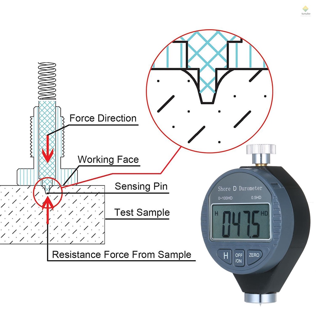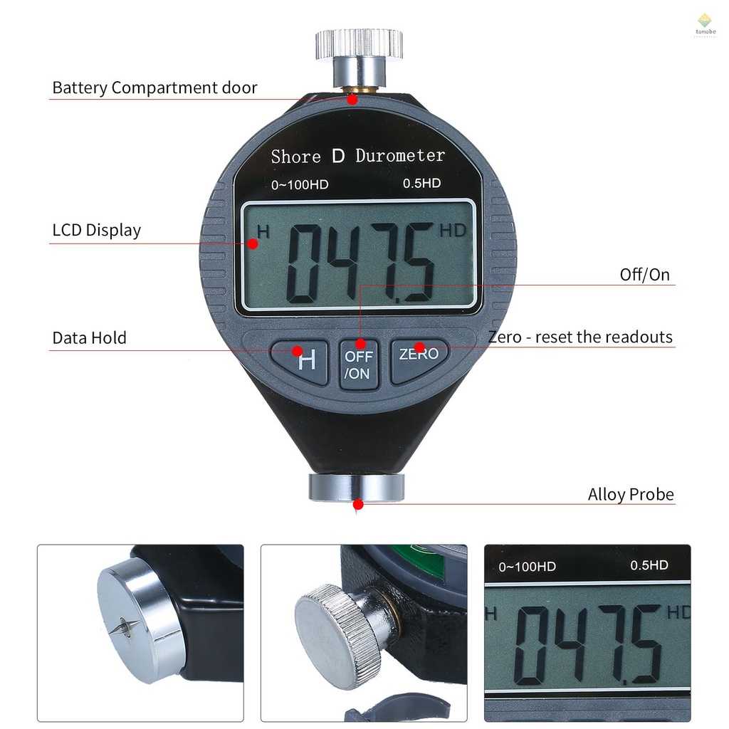 Portable 0-100HD Shore D Hardness Tester Meter Digital Durometer Scale for Rubber Tire Plastic Flooring with Large LCD Display
