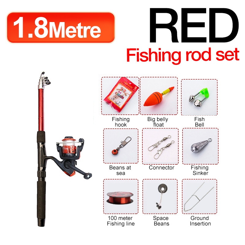 Portable 1.8M Spinning Fishing Rod Set Rod Reel Line Combos Telesscopic Fishing Rod Full Set
