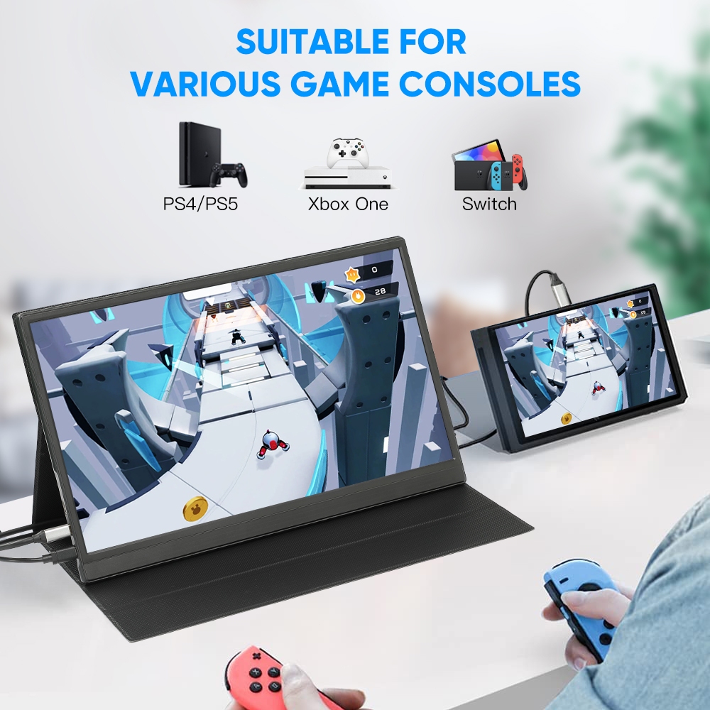 Portable 15.6Inch HDMI Monitor Type-C Port 1080P HDR IPS Screen with Dual Speaker Gaming Display Screen For Laptop Phone Xbox PS4 Switch