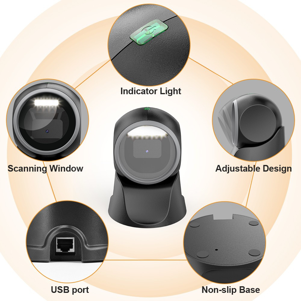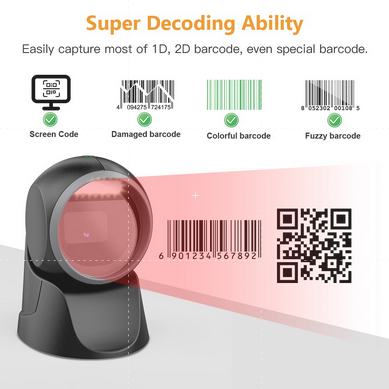 [PH Stock]Portable 1D 2D QR Code Desktop Platform Omnidirectional Hands-Free Barcode Reader Scanner