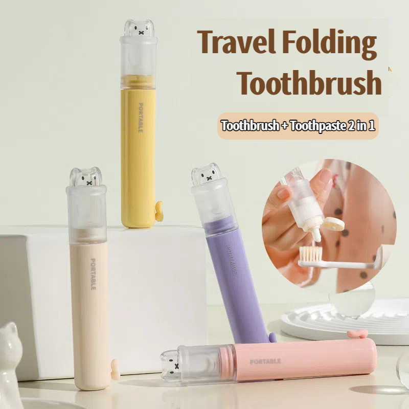 Portable 2-in-1 Toothbrush Set Toothpaste Storage Case Travel Mini Soft Bristle Toothbrush
