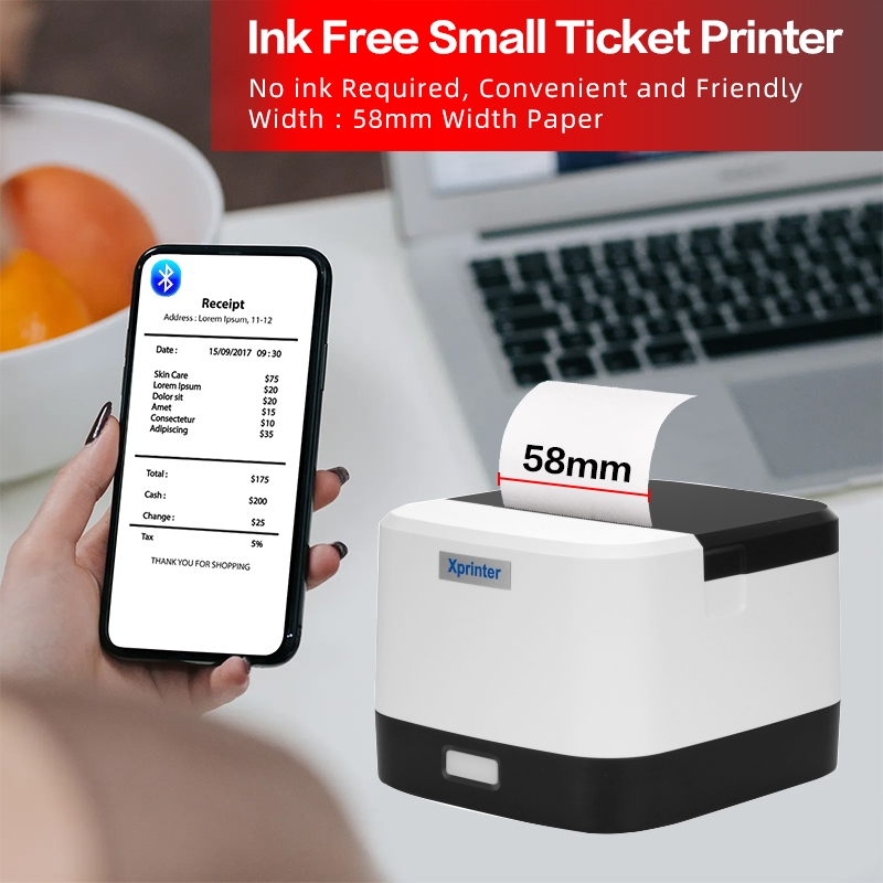 Portable 58mm Thermal Receipt Printer Support Loyverse, Android, Windows System,USB/Bluetooth