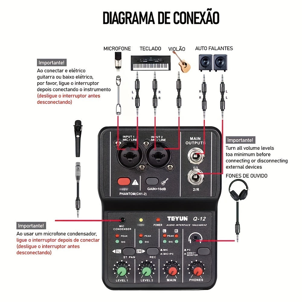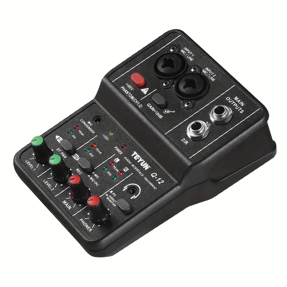 Teyun Q12 Professional External Sound Card | 48V Phantom Power Supply | Portable Recording Live Sound Card | Suitable for computer live streaming, guitar recording, podcast product
