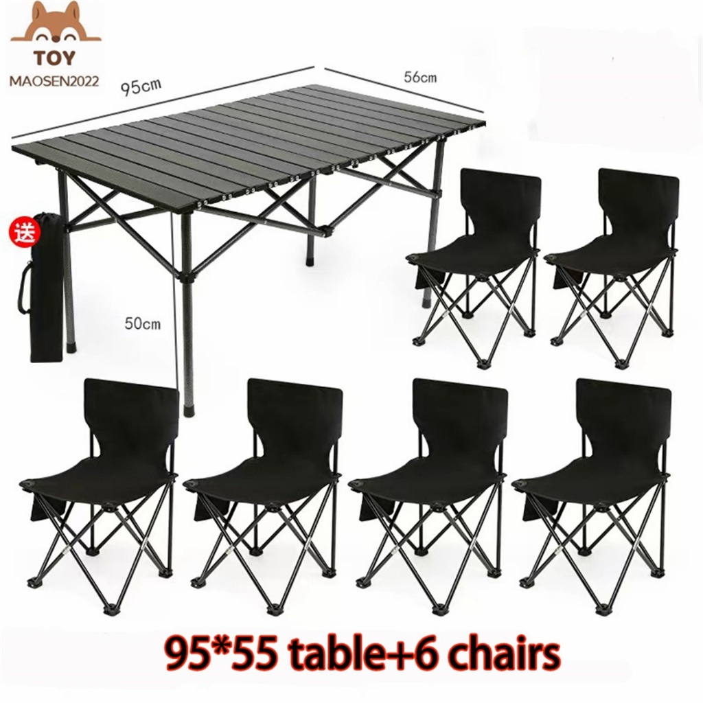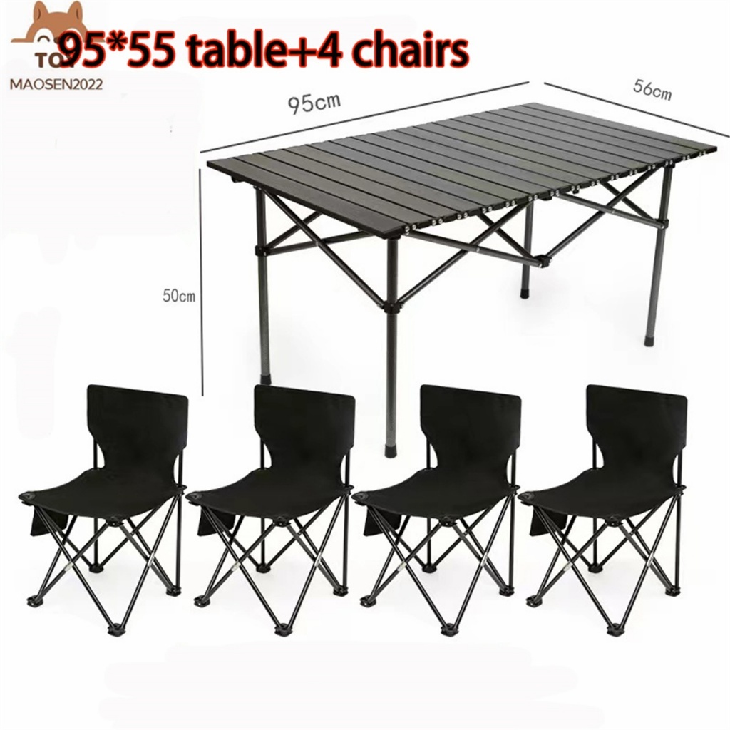 Portable Camping Table and Chairs Set - Large Aluminum Alloy Table for Wilderness Picnics and Outdoor Activities