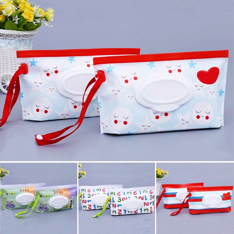 Portable Durable Baby Wet Wipe Pouch Wipes Holder Case Reusable Refillable Wet Wipe Bag Cute Outdoor Tissue Storage Box