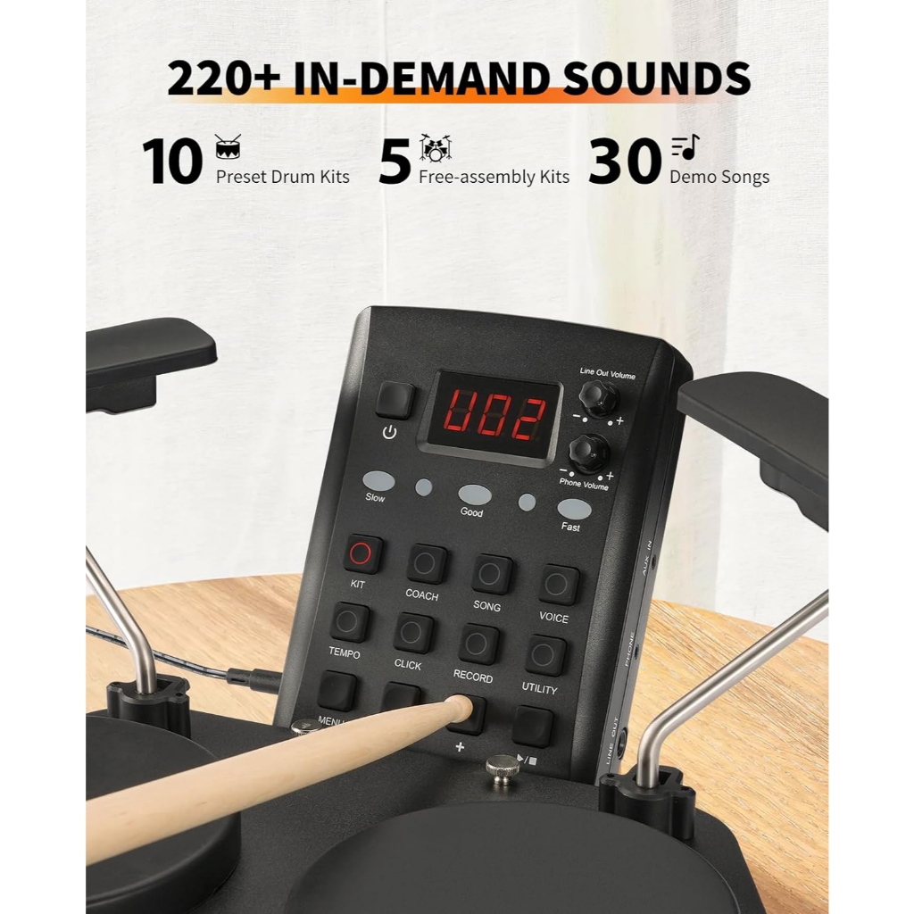 Portable Electric Drum Set for Beginner with Quiet Mesh Snare Drum Pads,Table Top Drum Kit,USB MIDI