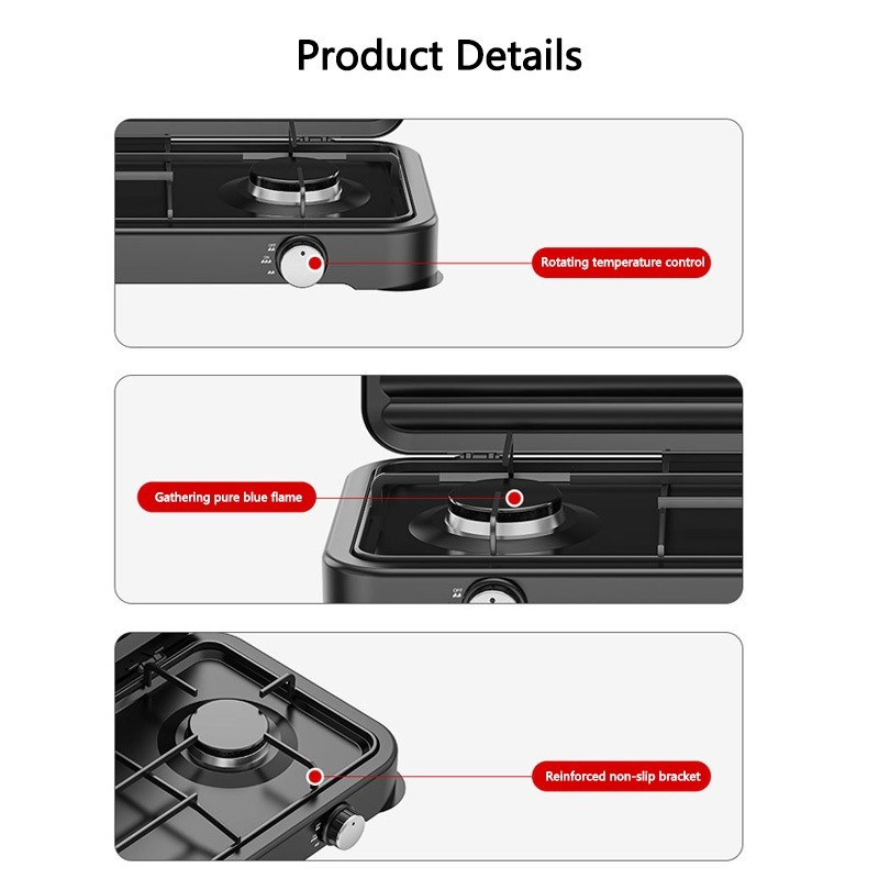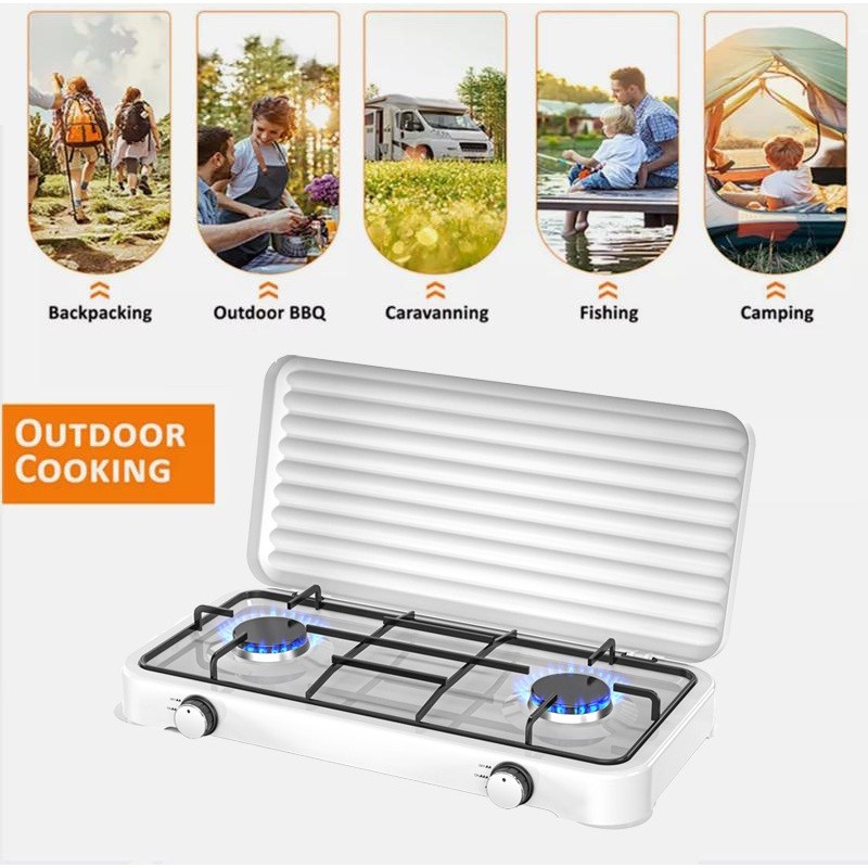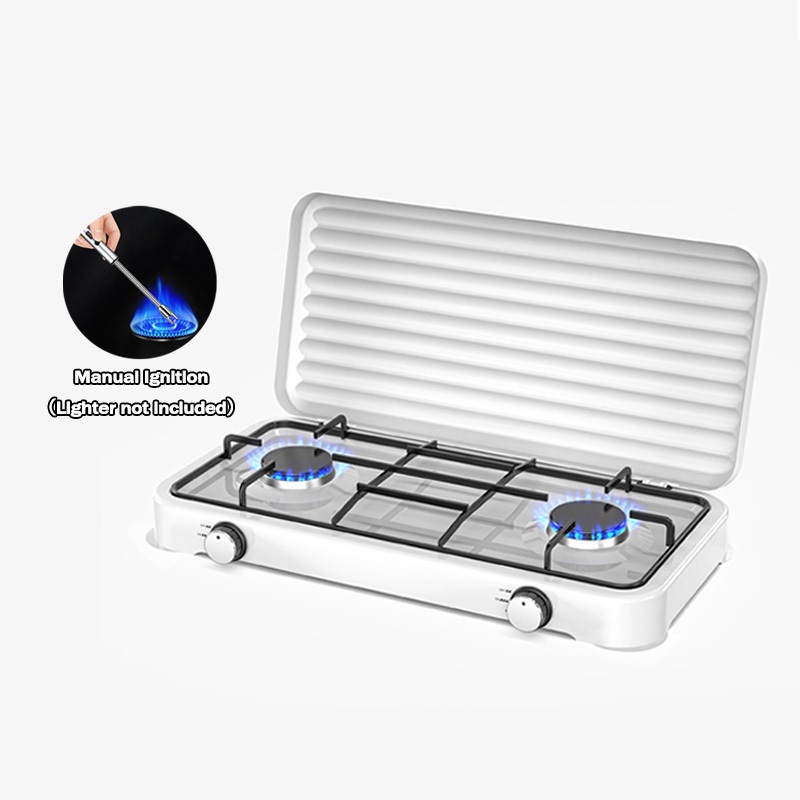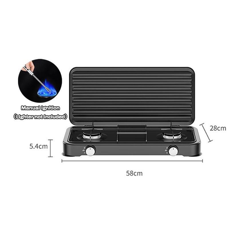 Portable Gas Stove Steel tabletop Natural/Liquefied Gas Stove Manual Ignition 2 Burner