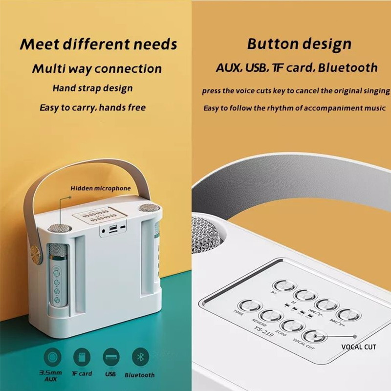 Portable Karaoke Pink Bluetooth Speaker Dual Wireless Microphone Outdoor Family Gathering Ktv