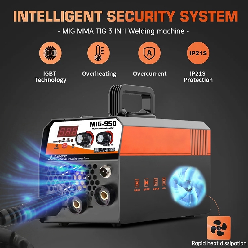 Portable MIG-999 Welding Machine MIG/TIG/MMA 3IN1 Gasless Welder IGBT Inverter Welder DC Welder